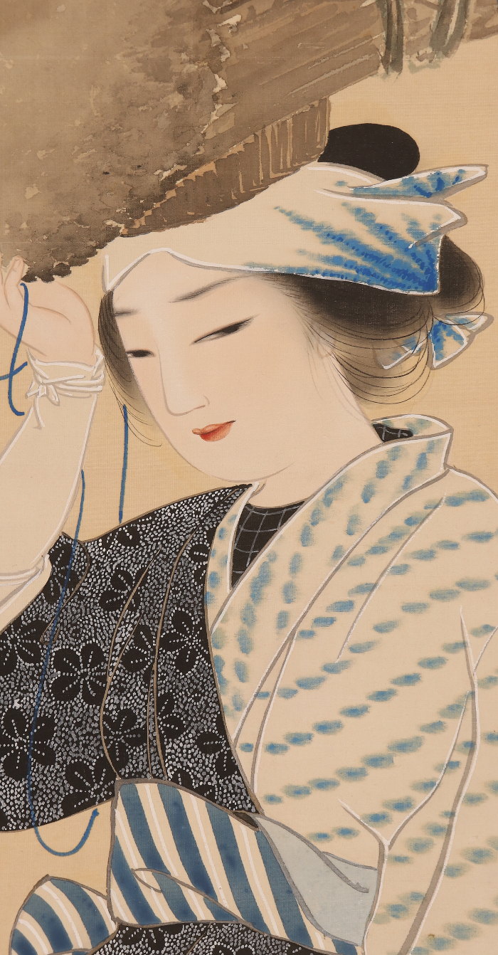 掛軸<小方華圃>美人画 紅葉に大原女図 秋掛(HP1097)