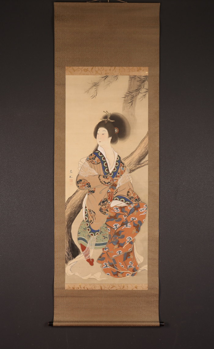 【売約済】掛軸<平井直水>美人画 楊貴妃図(HP1119)