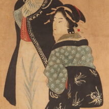【売約済】掛軸 双幅 異人と美人図 無落款 長崎絵 更紗表具(HP1125)