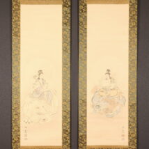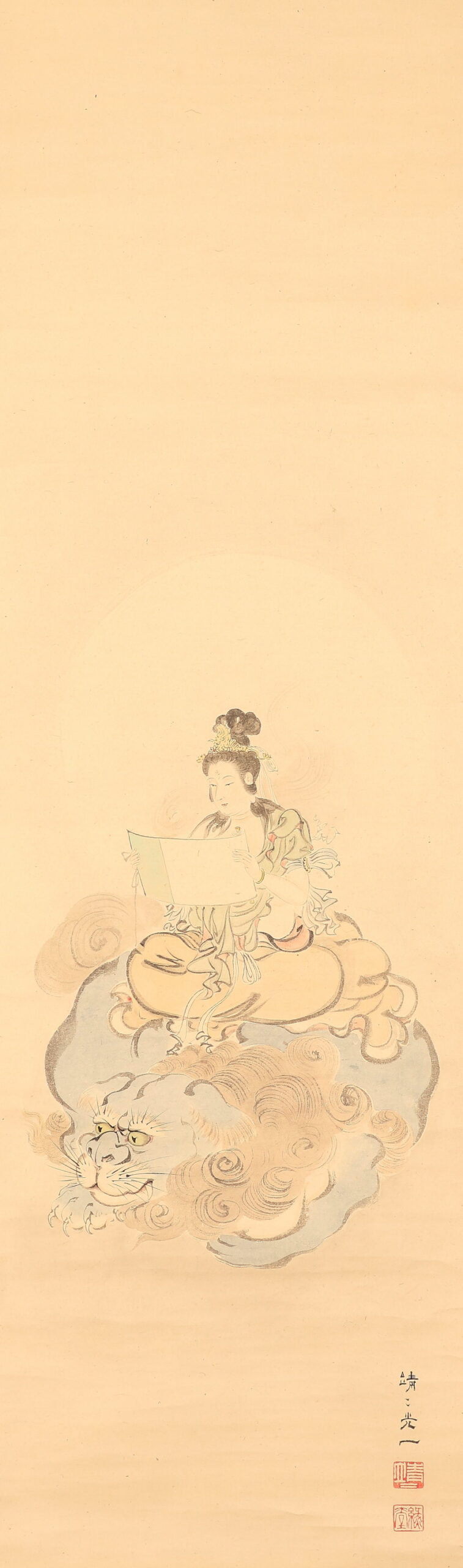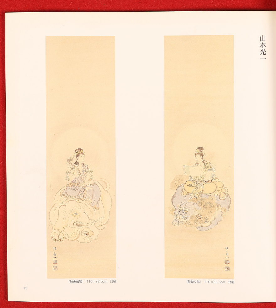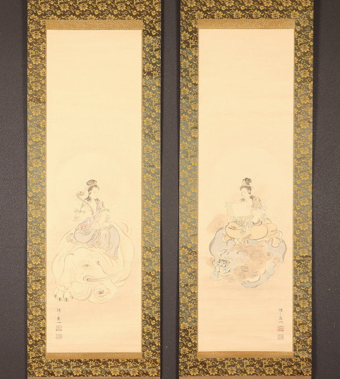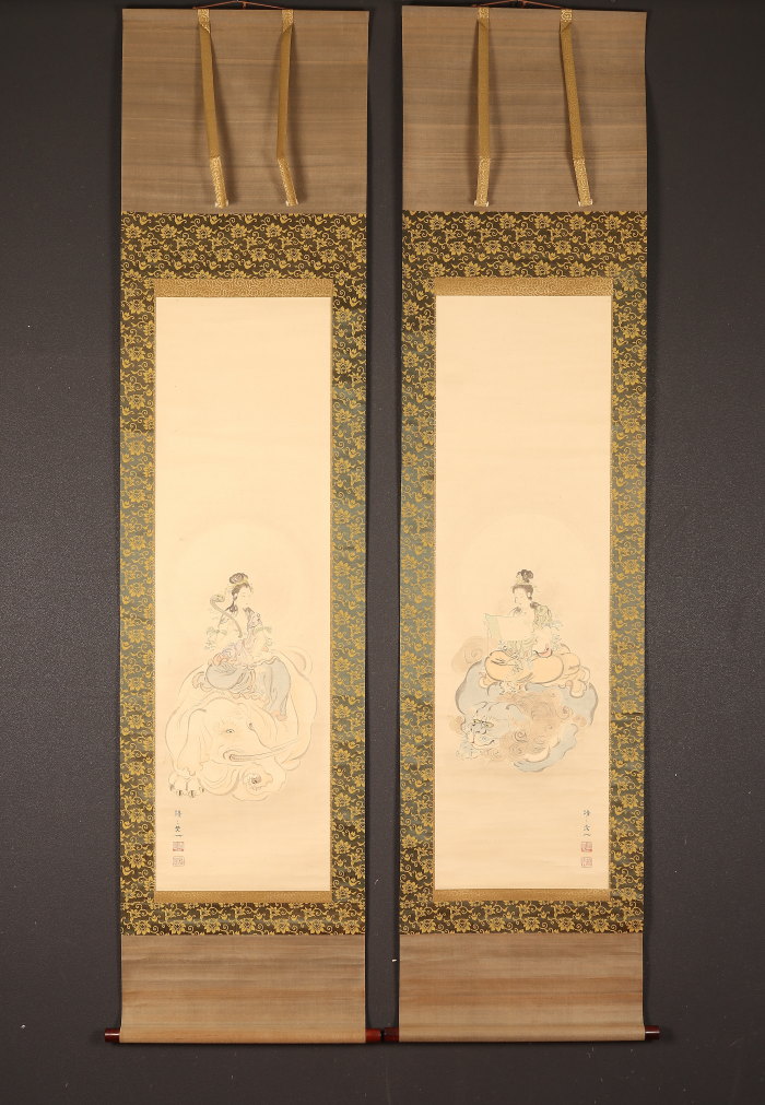 掛軸<山本光一>図録掲載品 仏画 双幅 普賢菩薩・文殊菩薩図(HP1342)