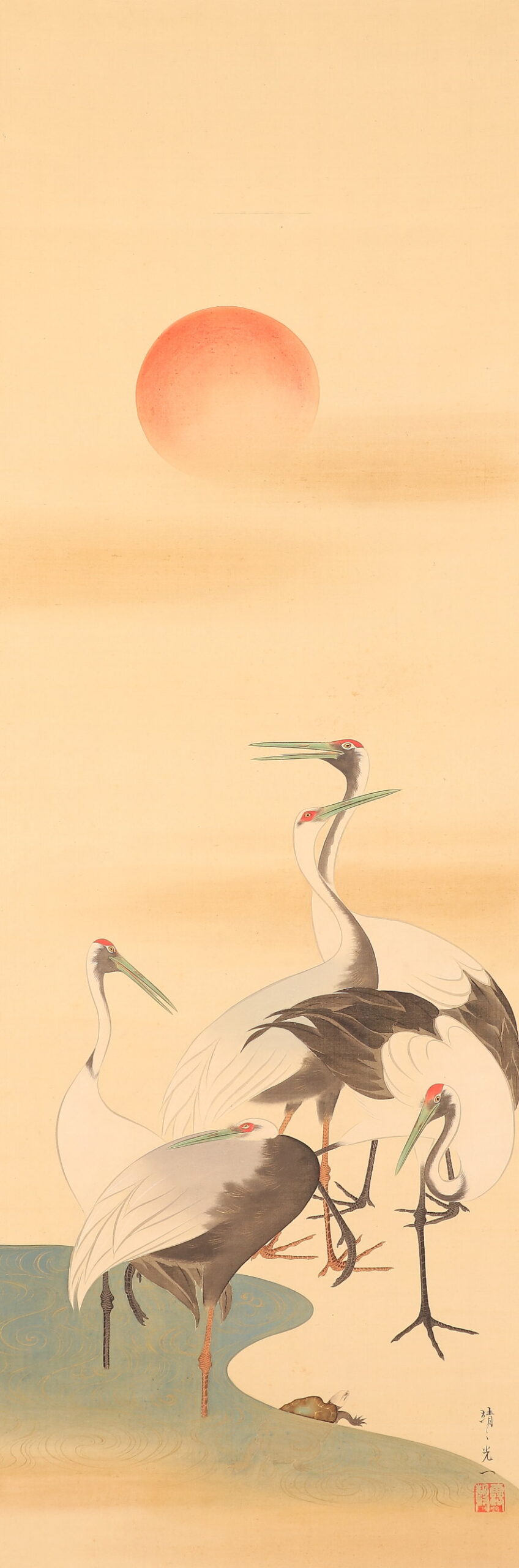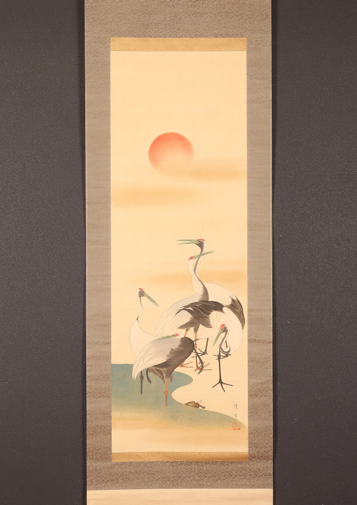掛軸<山本光一>図録掲載品 旭日群鶴図(HP1343)