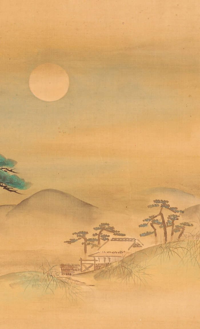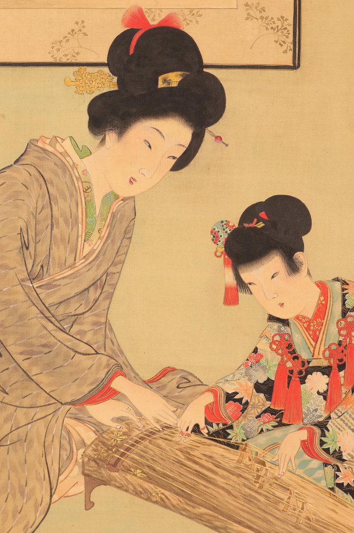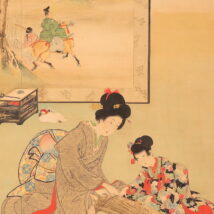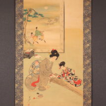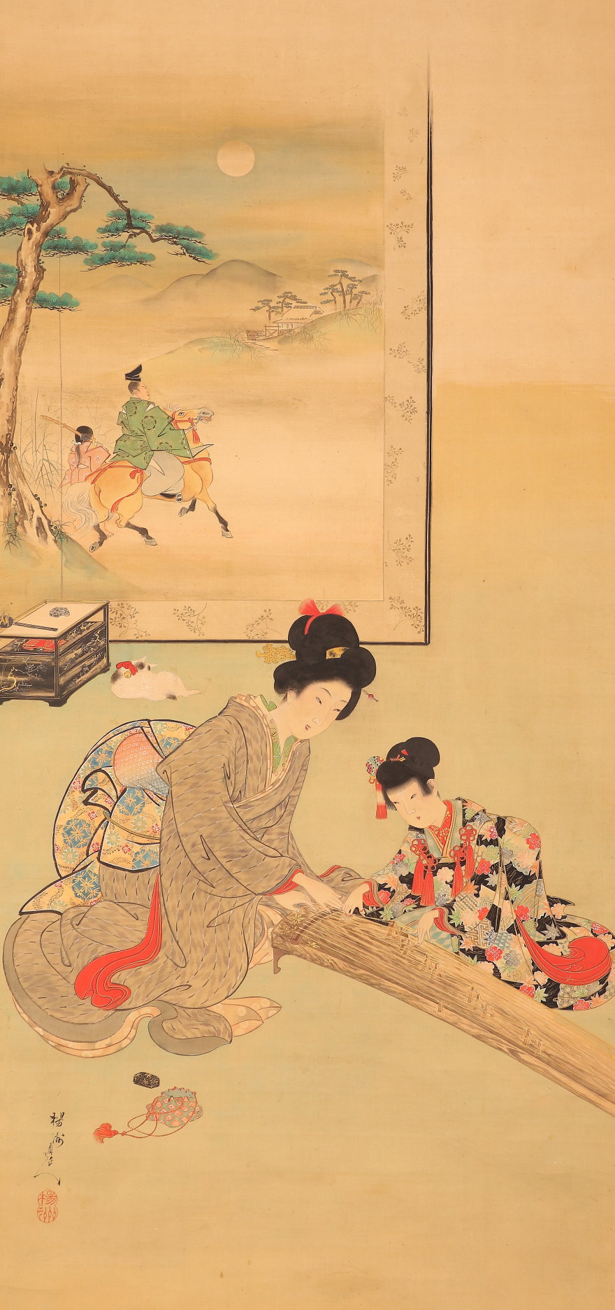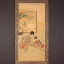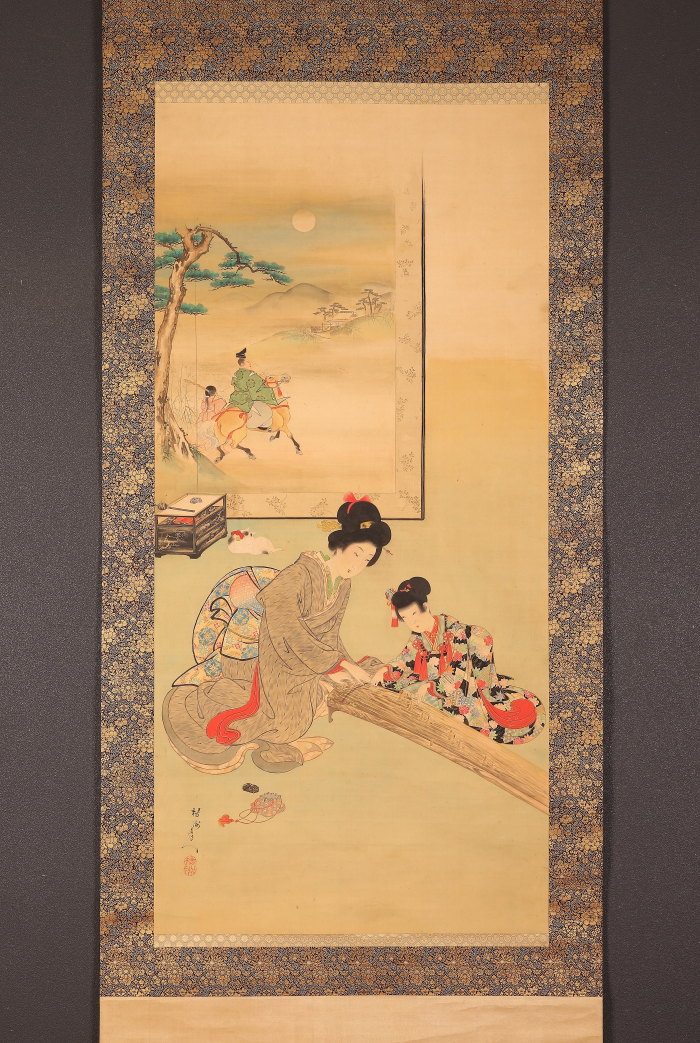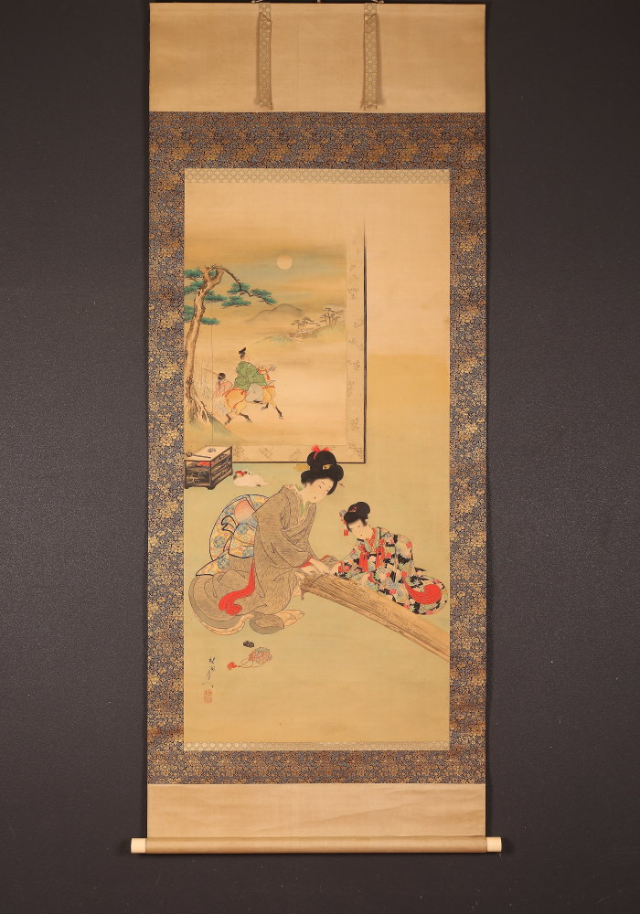 掛軸<楊洲周延>琴弾美人図 平家物語嵯峨野の月見立絵(HP1345)