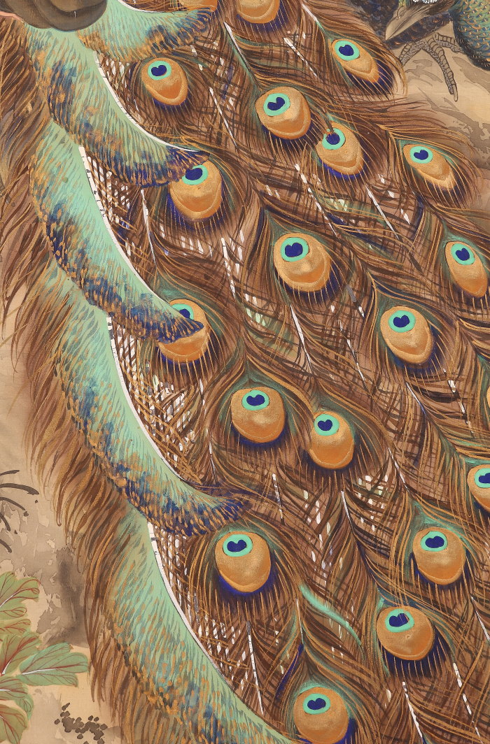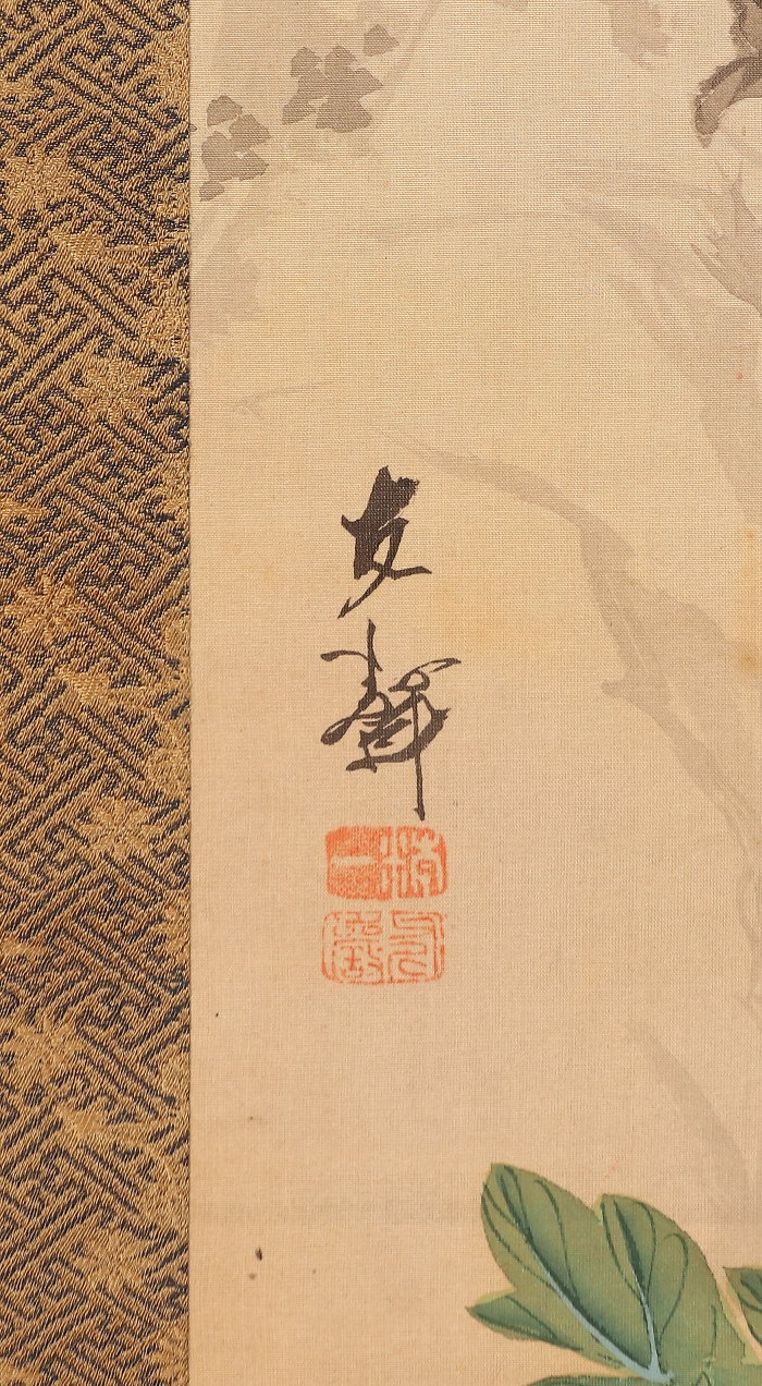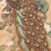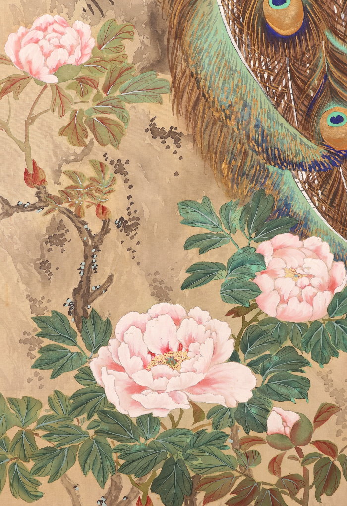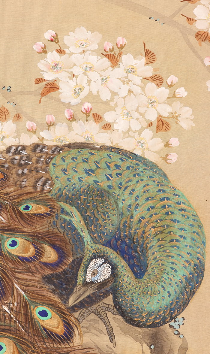 掛軸<堀江友声>桜牡丹に孔雀図(HP1347)