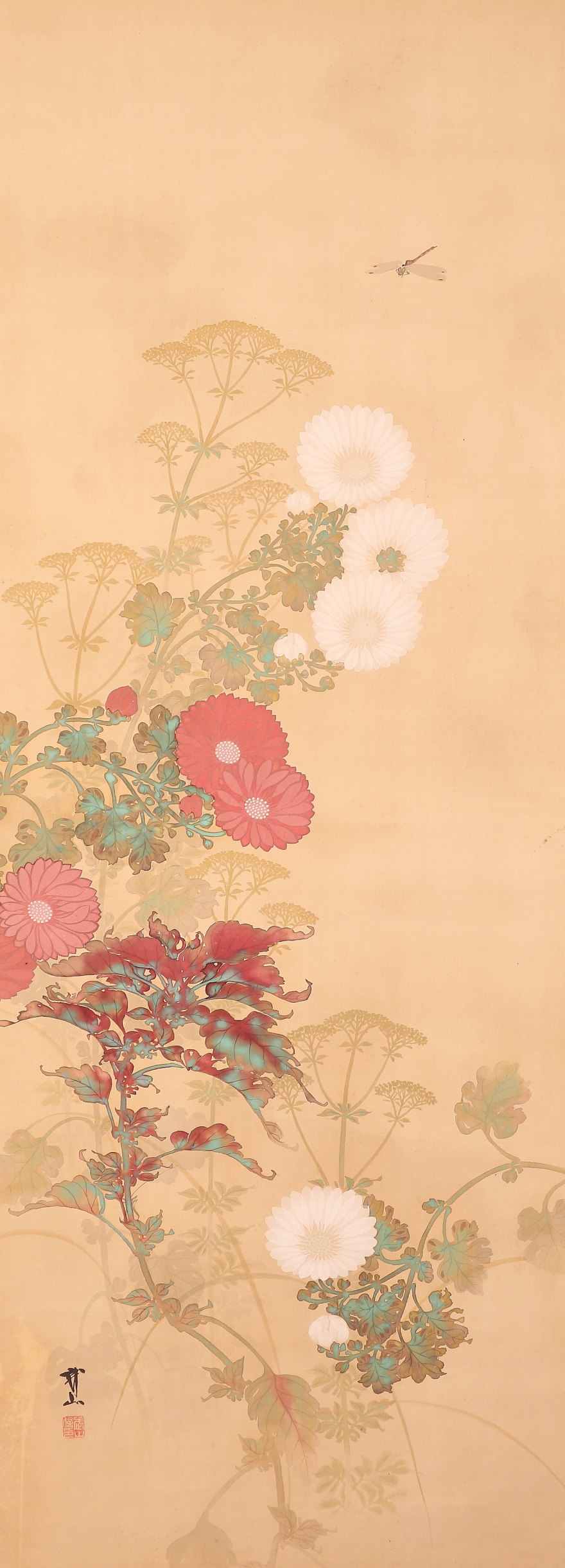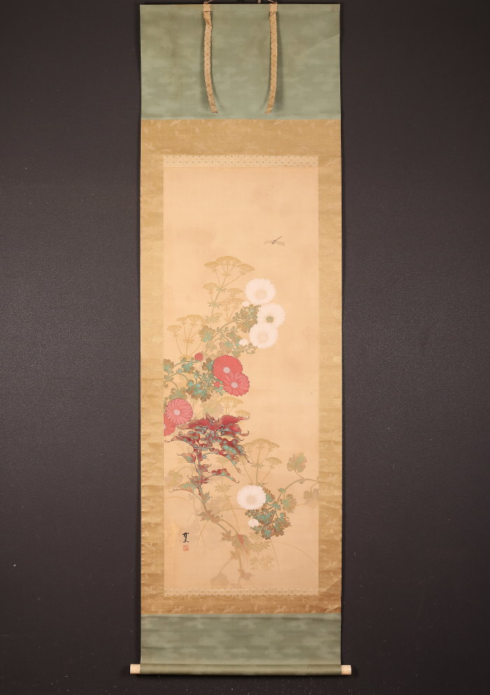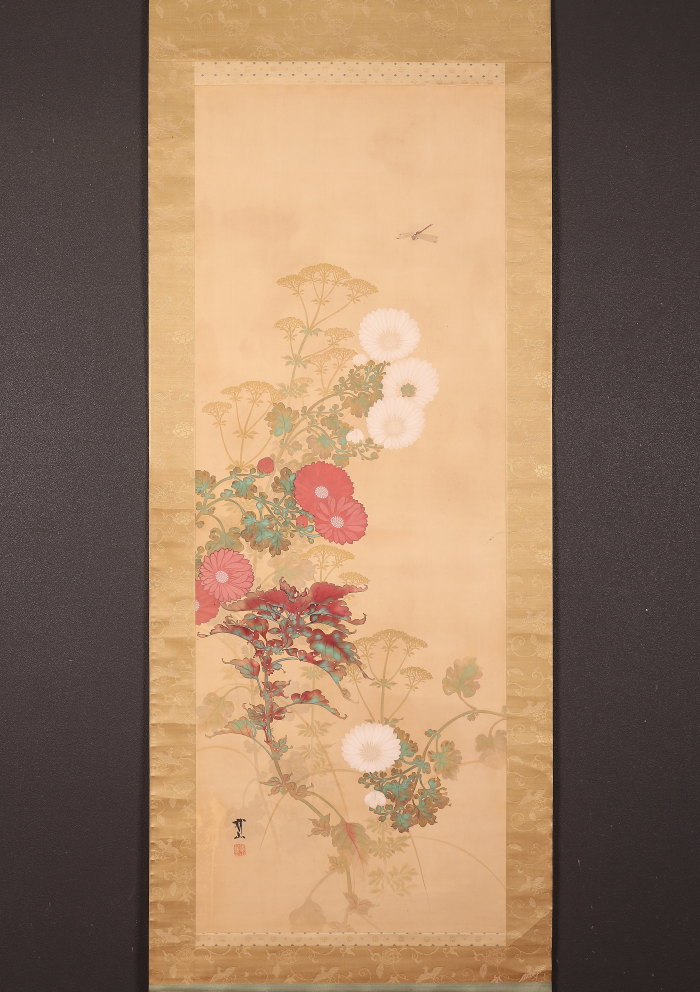 掛軸<木村武山>紅白菊図(HP1348)