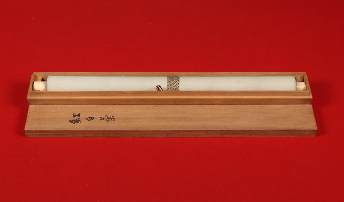シミ、本紙に少し折れ、表具に折れ、浮きがあります。 - 付属品共箱