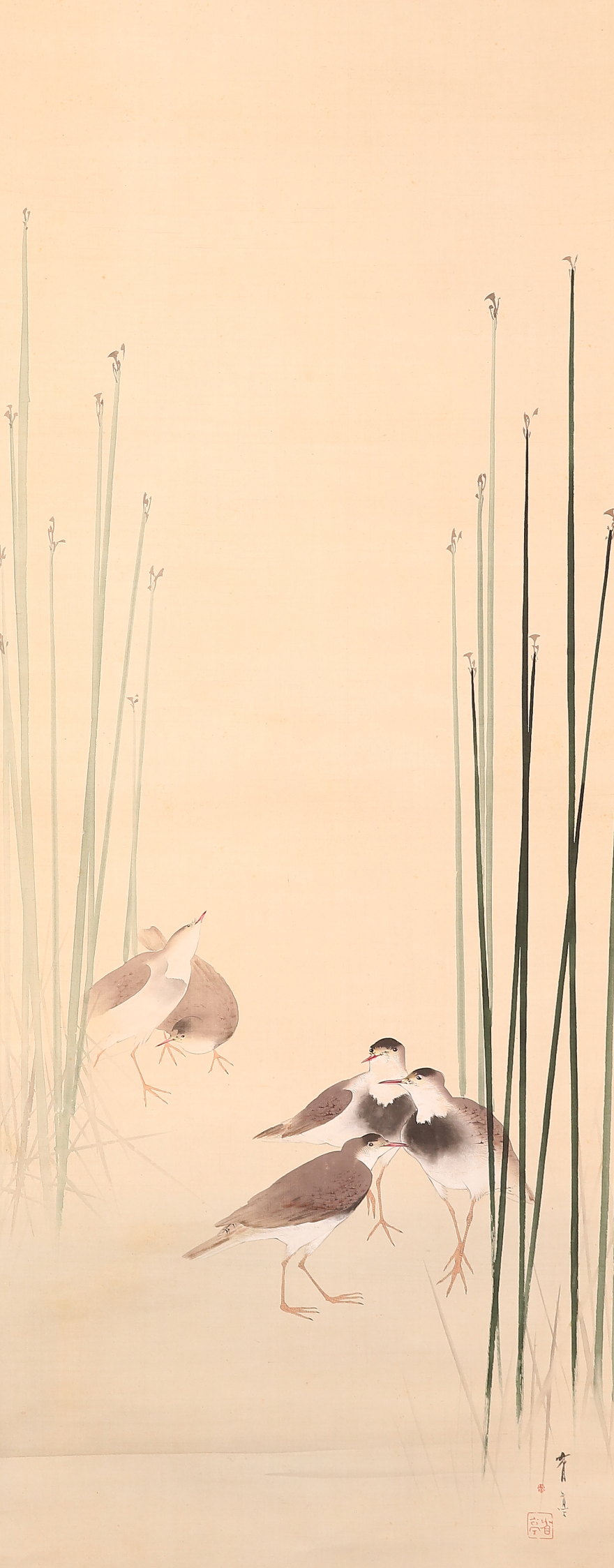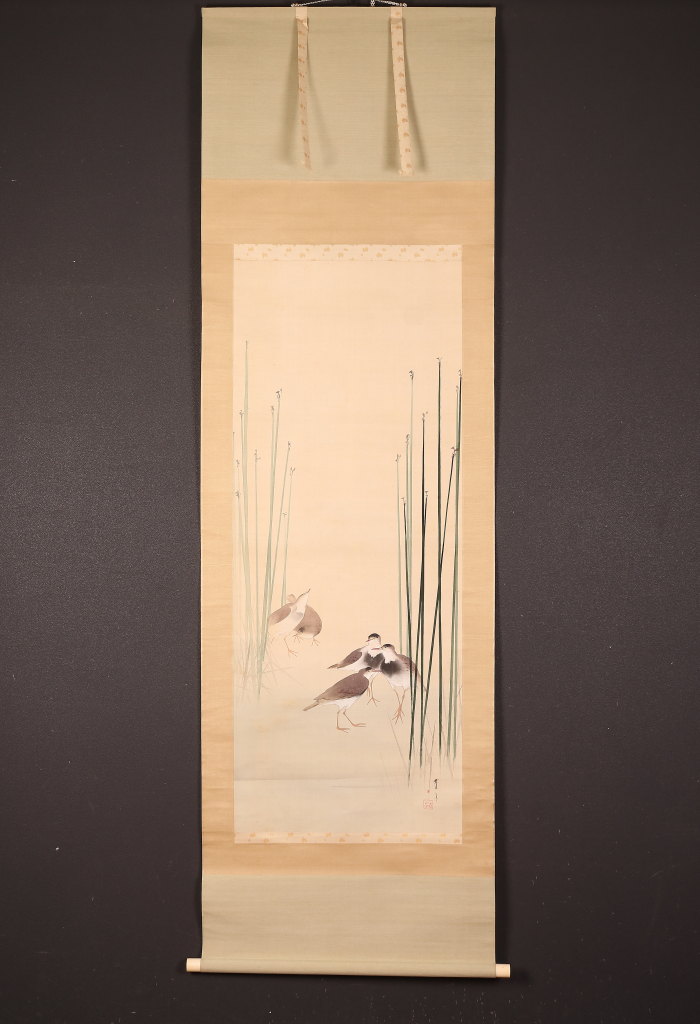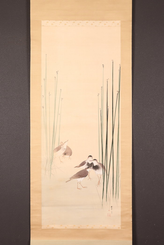 掛軸<渡辺省亭>群鳥図(HP1352)