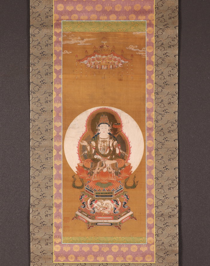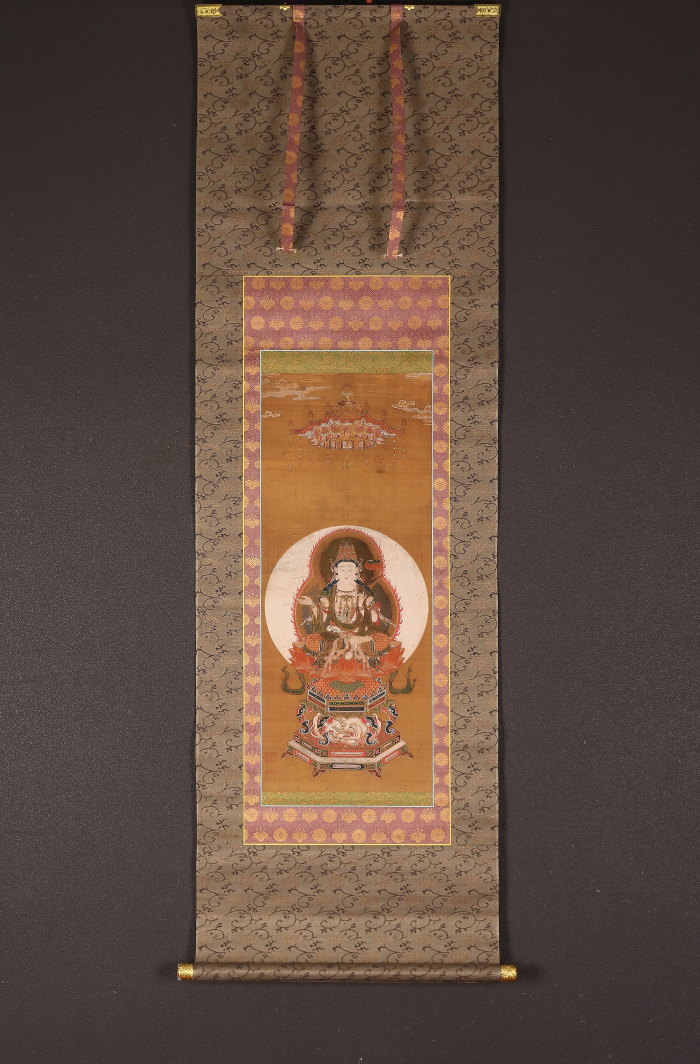 掛軸 仏画 普賢菩薩像 五七桐・菊花紋表具 中国(HP1353)