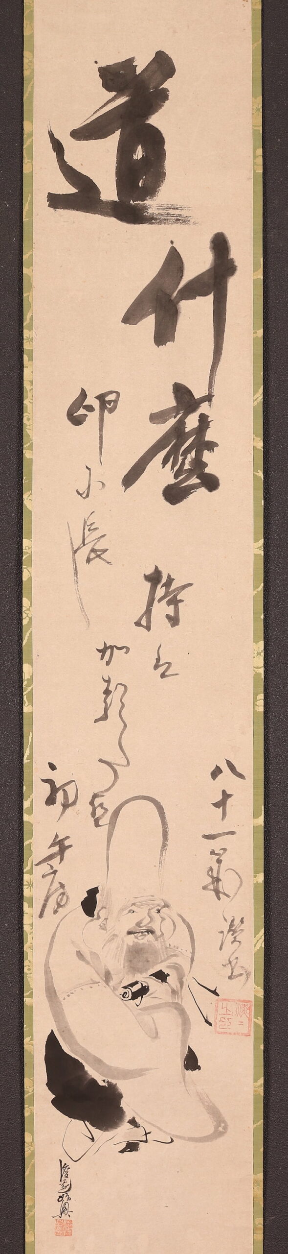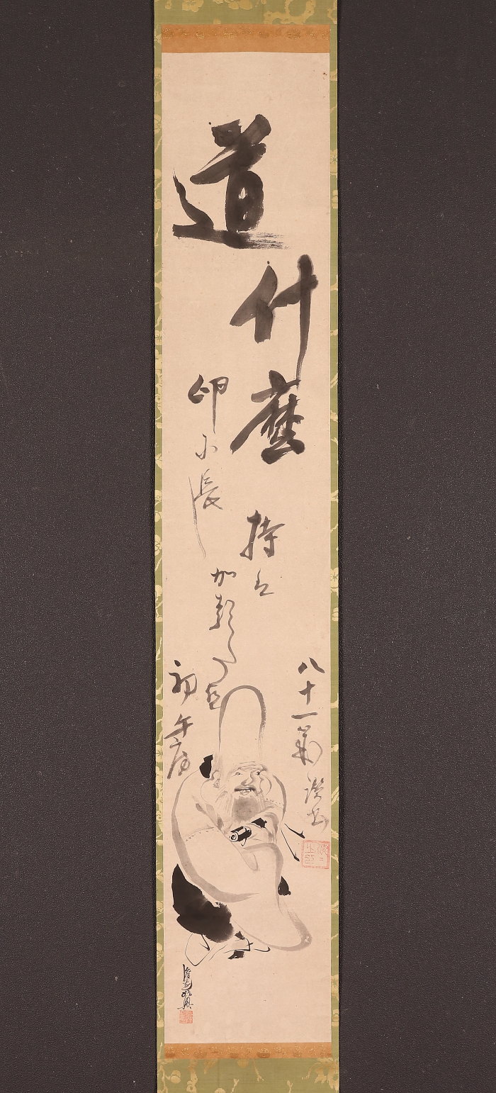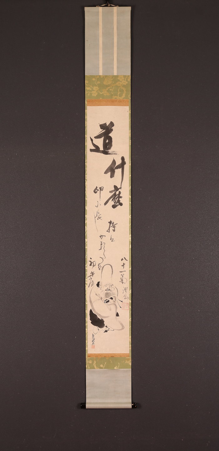 掛軸<松木淡々 渡辺始興>寿老人画賛(HP1356)