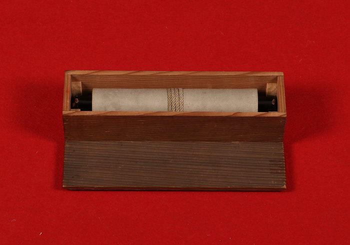 シミ、折れ、表具に浮き、虫食い、両軸先にイタミがあります。 - 付属品箱有り