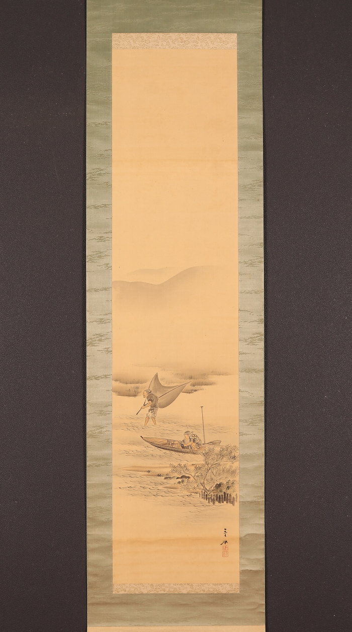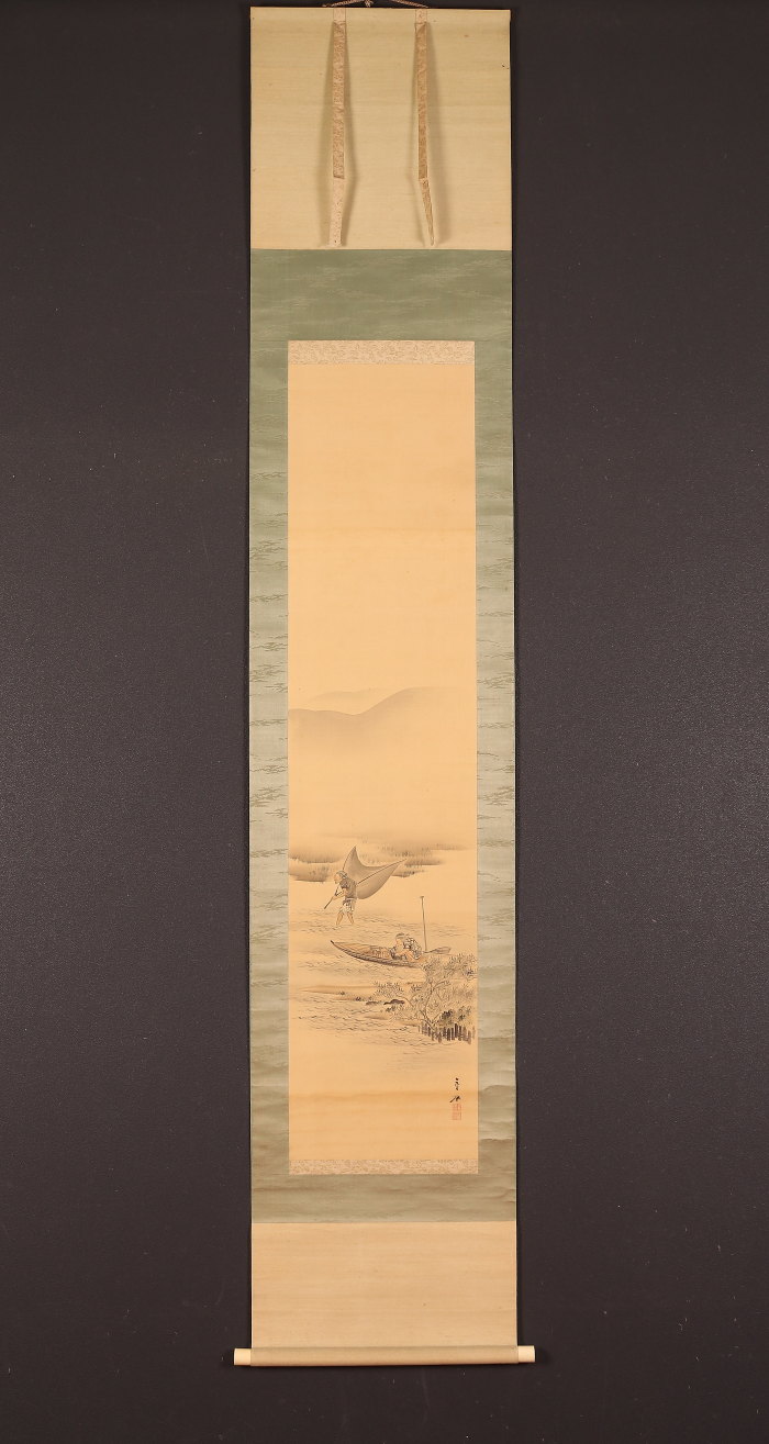掛軸<五井金水>漁夫図(HP1357)