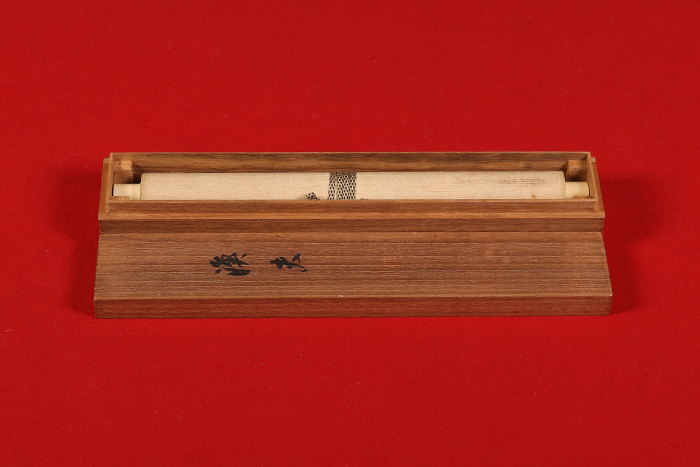 シミ、折れ、表具上部に穴、本紙に浮きがあります。 - 付属品共箱