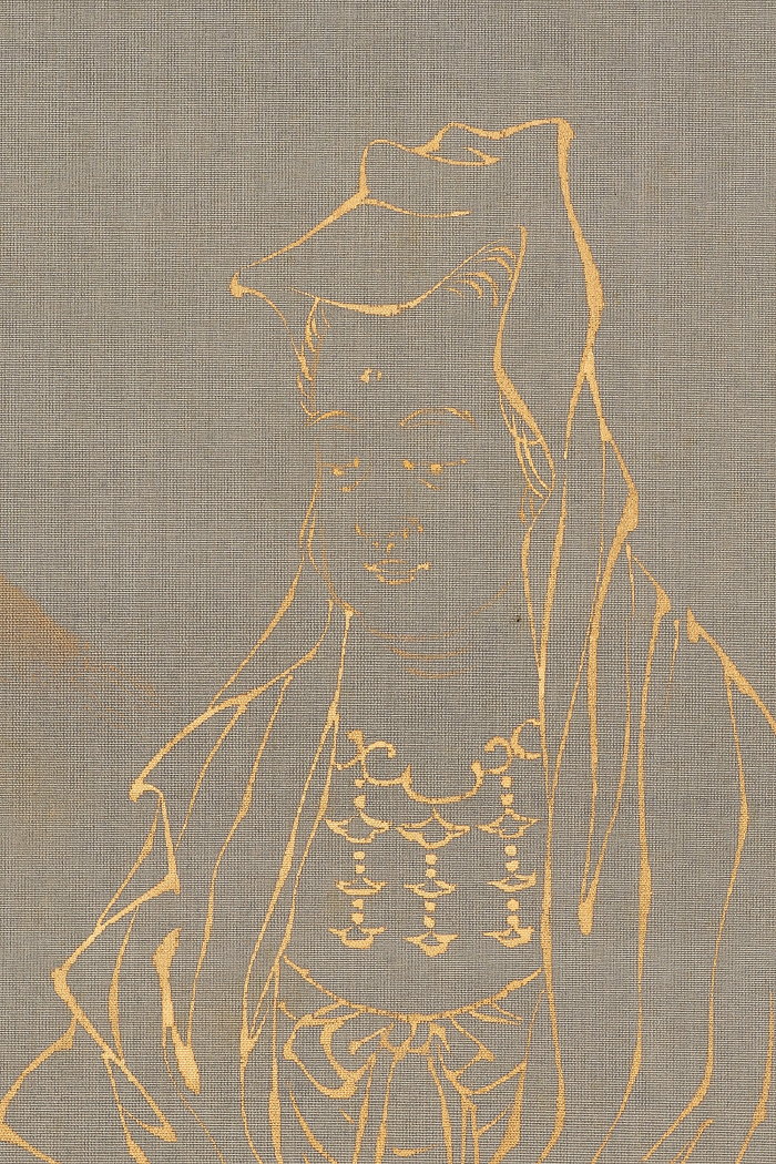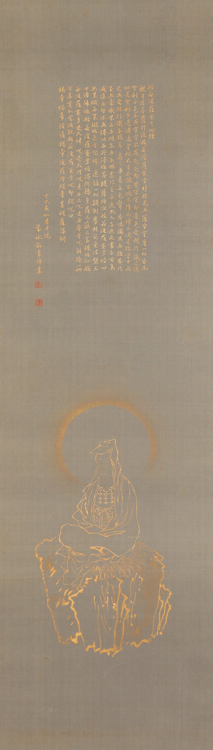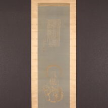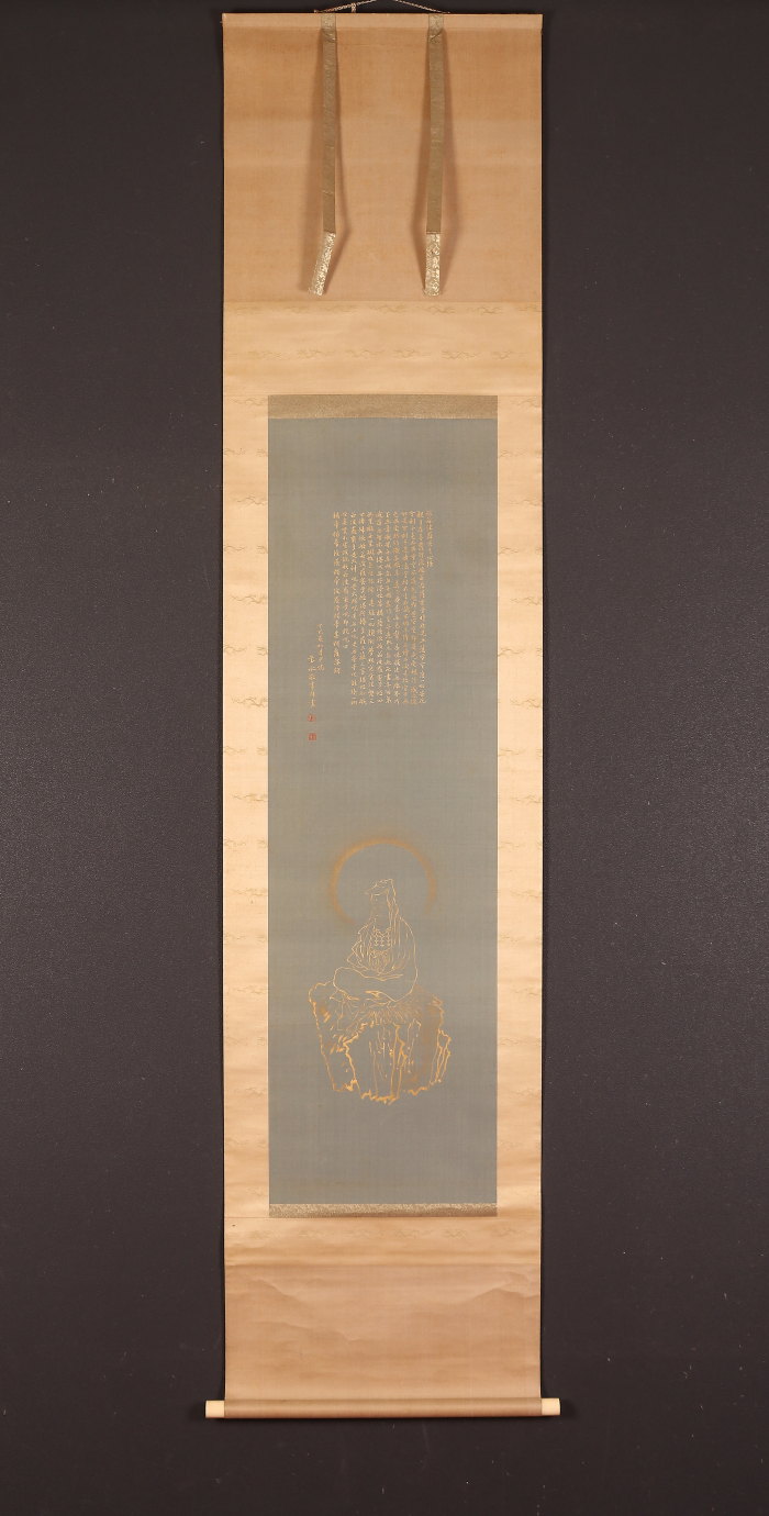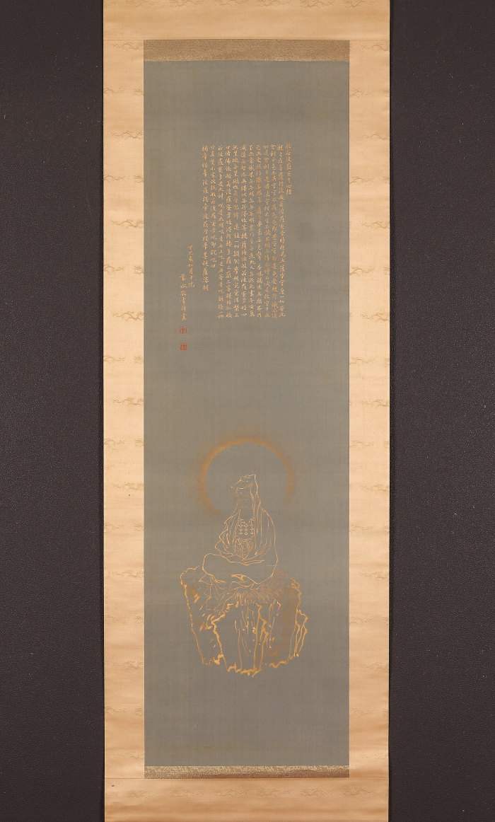 掛軸<須磨対水>仏画 白衣観音画賛 金泥絵 写経(HP1358)