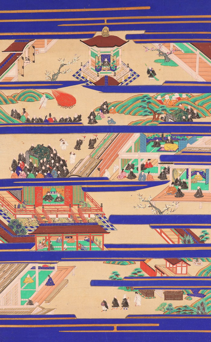 親鸞上人一代の伝記を絵画化したもの。本願寺3世の覚如が1295年(永仁3)に二巻本を撰述し、法眼浄賀に絵を描かせたのが最初で、以後各門派により盛んに制作され、布教に用いられた。永仁本の原本は今日伝わっていないが、京都・東本願寺蔵、円寂・宗舜筆の康永本(4巻、1343)、同弘願本(4巻、1346)、千葉県照願寺本(4巻、1344)、西本願寺蔵の『善信上人絵伝』(2巻)などの絵巻の遺品がある。また三河の真宗寺院を中心に掛幅画も流行し、遺品では愛知県妙源寺本、同如意寺本などの諸本がとくに知られている。