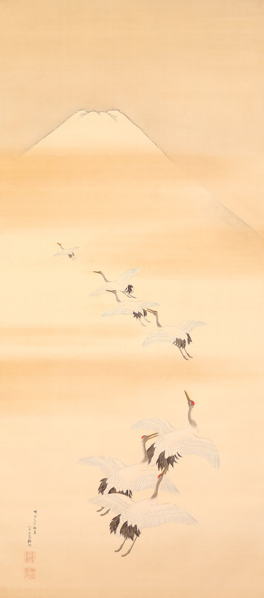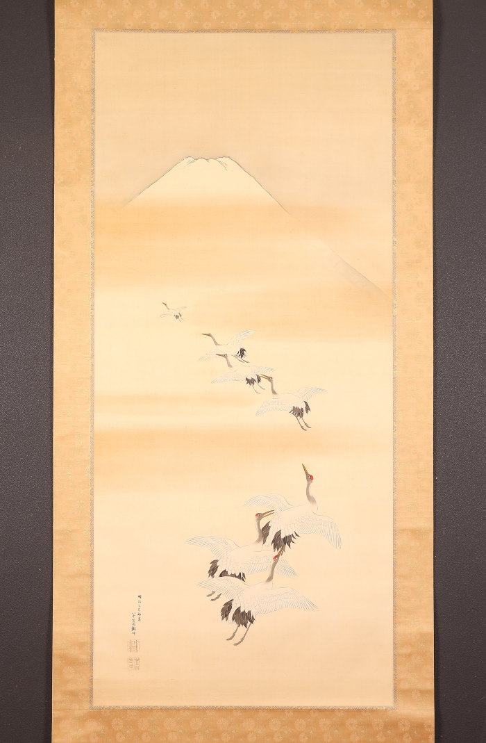 掛軸<上田耕冲>富士岳舞鶴図(HP1375)