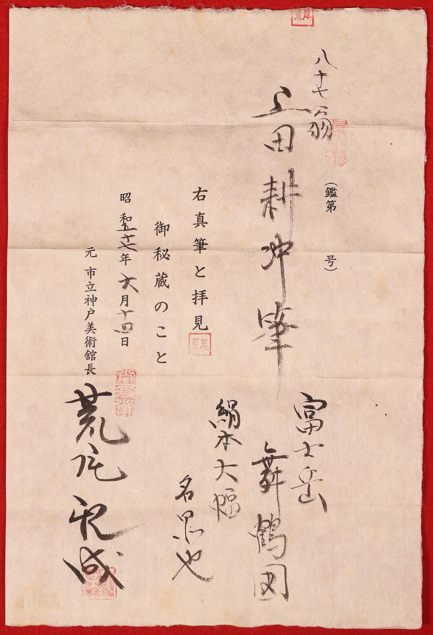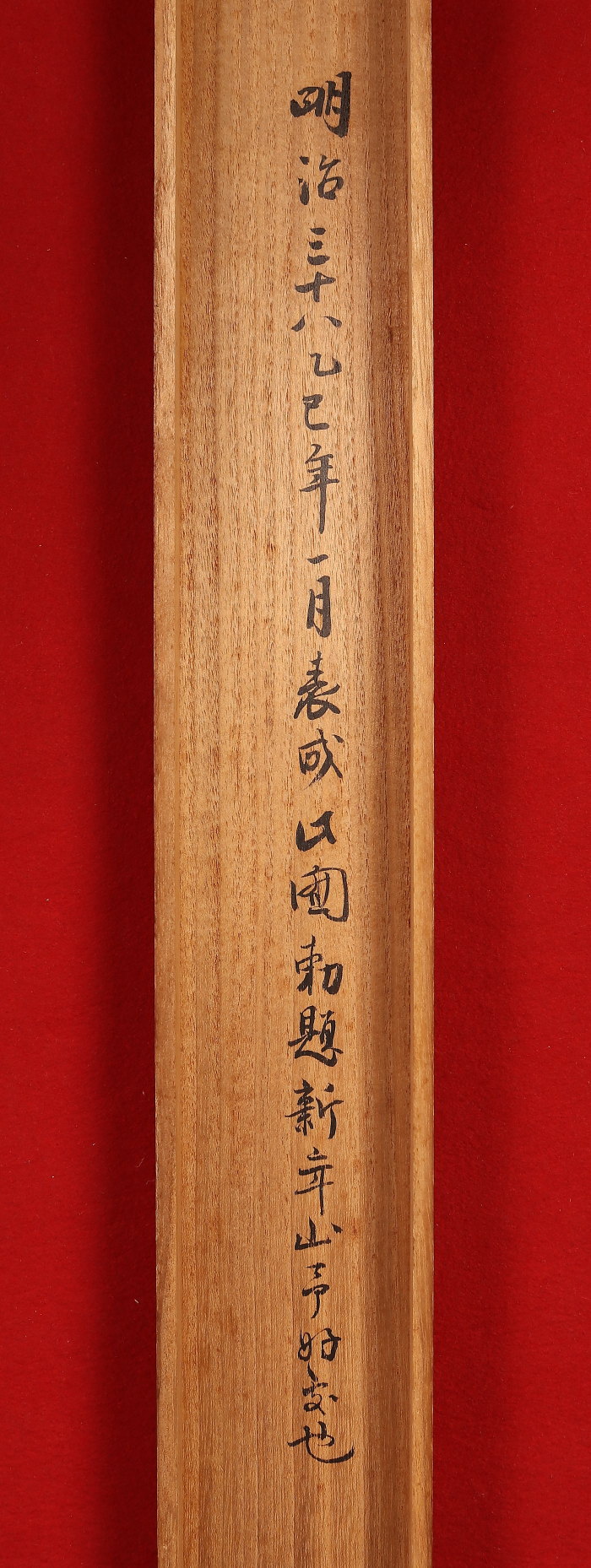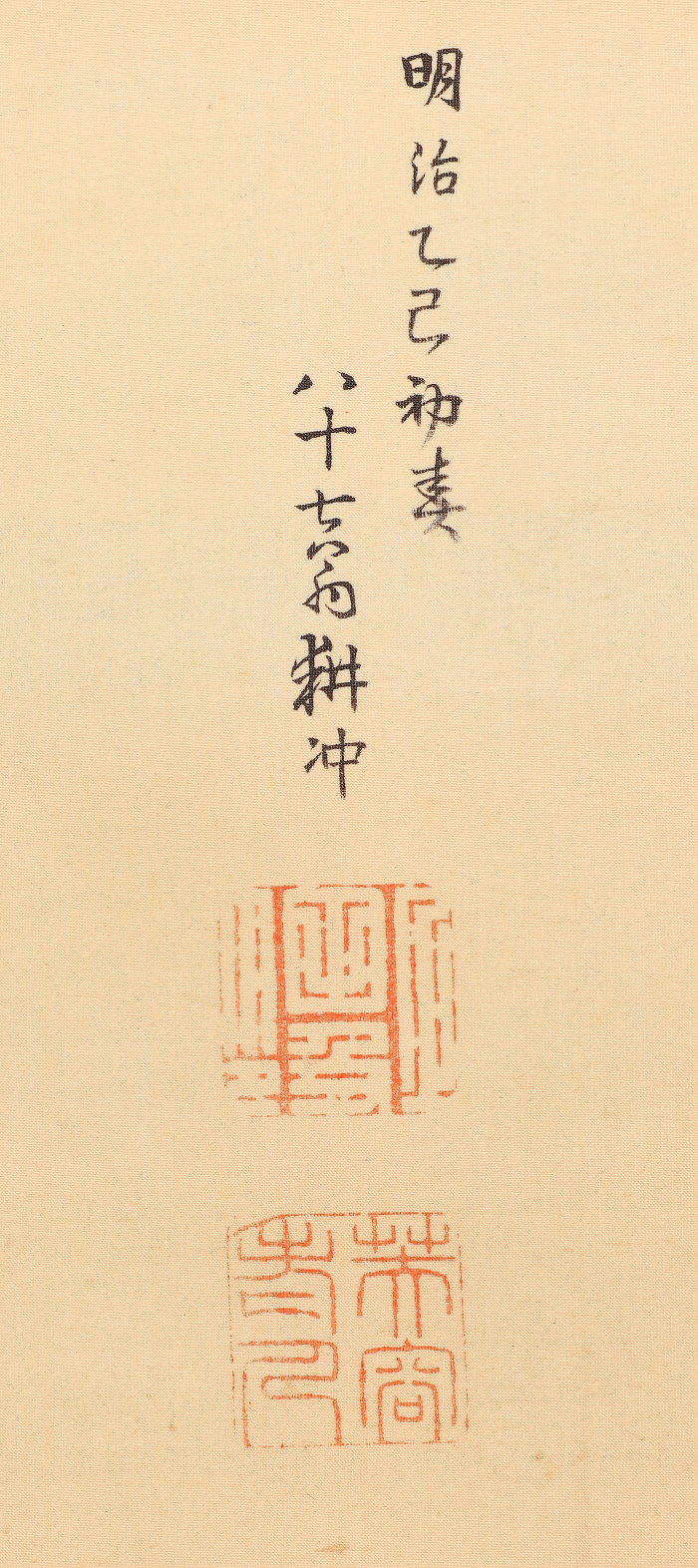 シミ、表具に少し虫食いがあります。 - 付属品箱有り・極書(荒尾親成)
