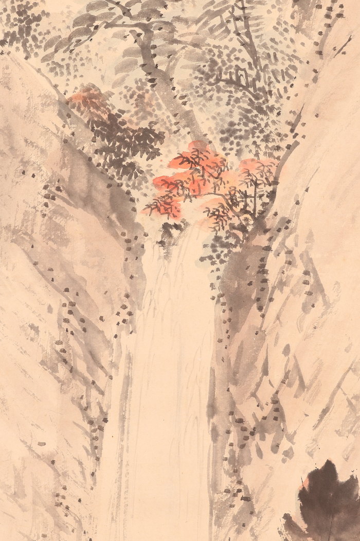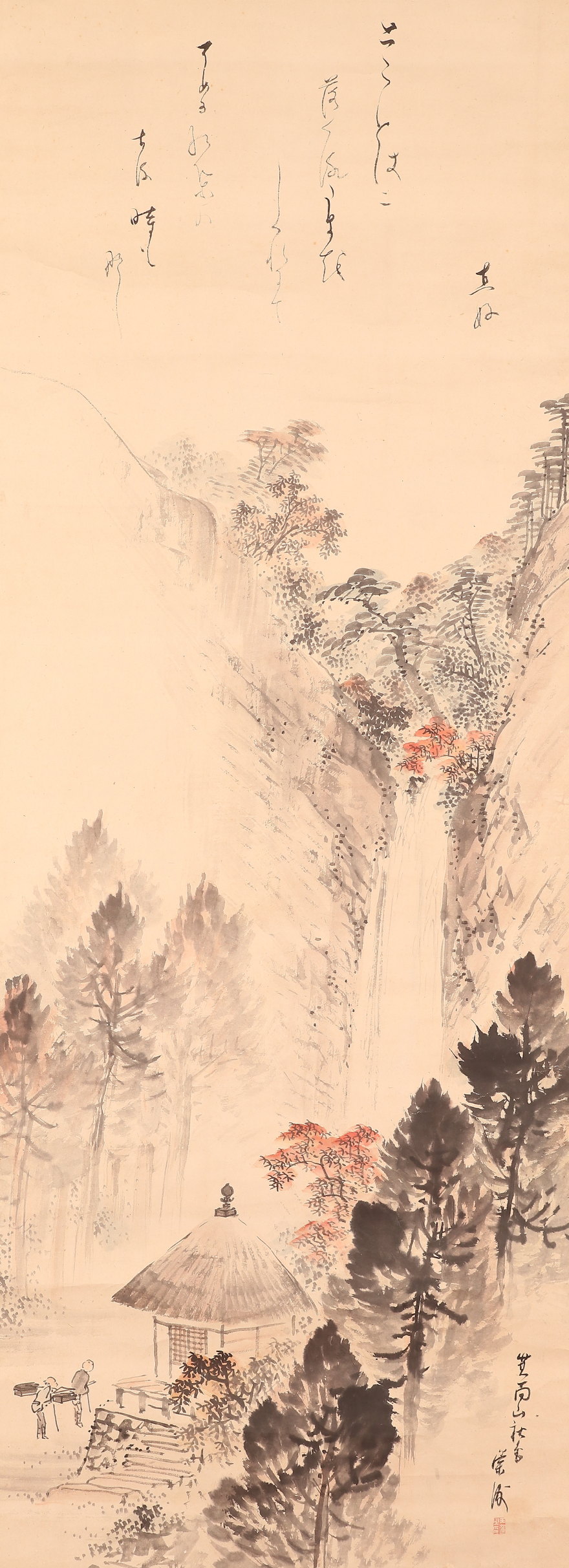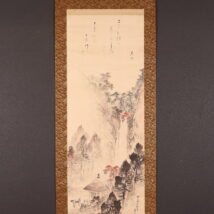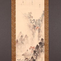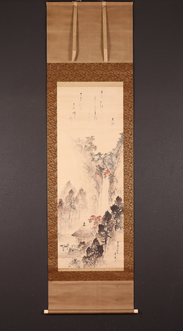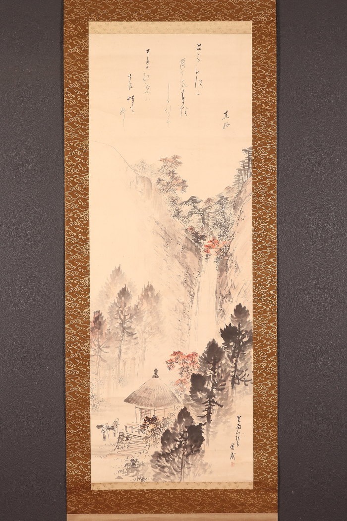 掛軸<玉手菊洲 熊谷直好>秋景瀑布画賛 「箕面山」(HP1386)