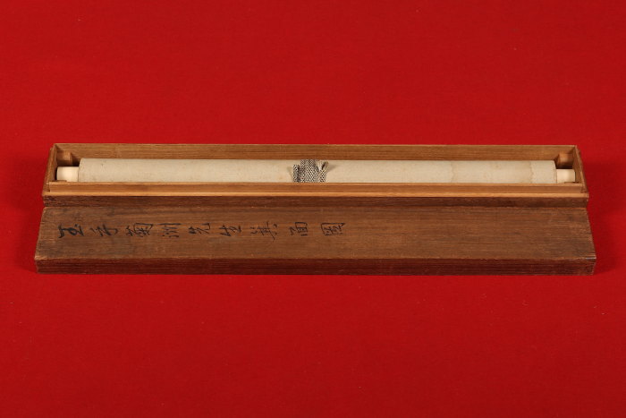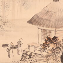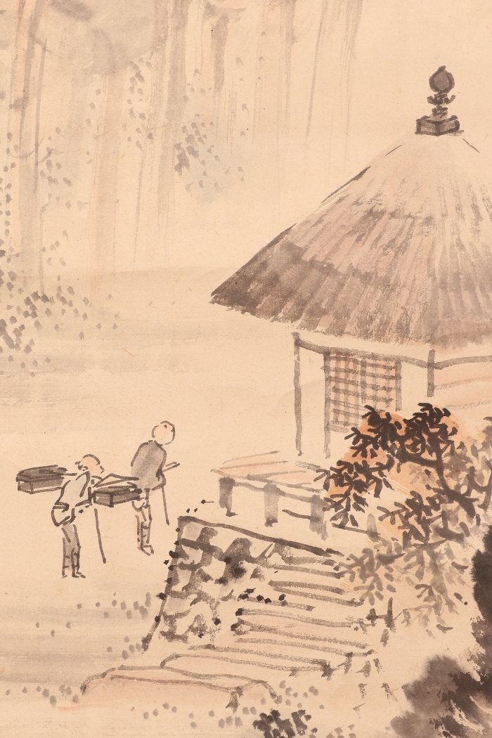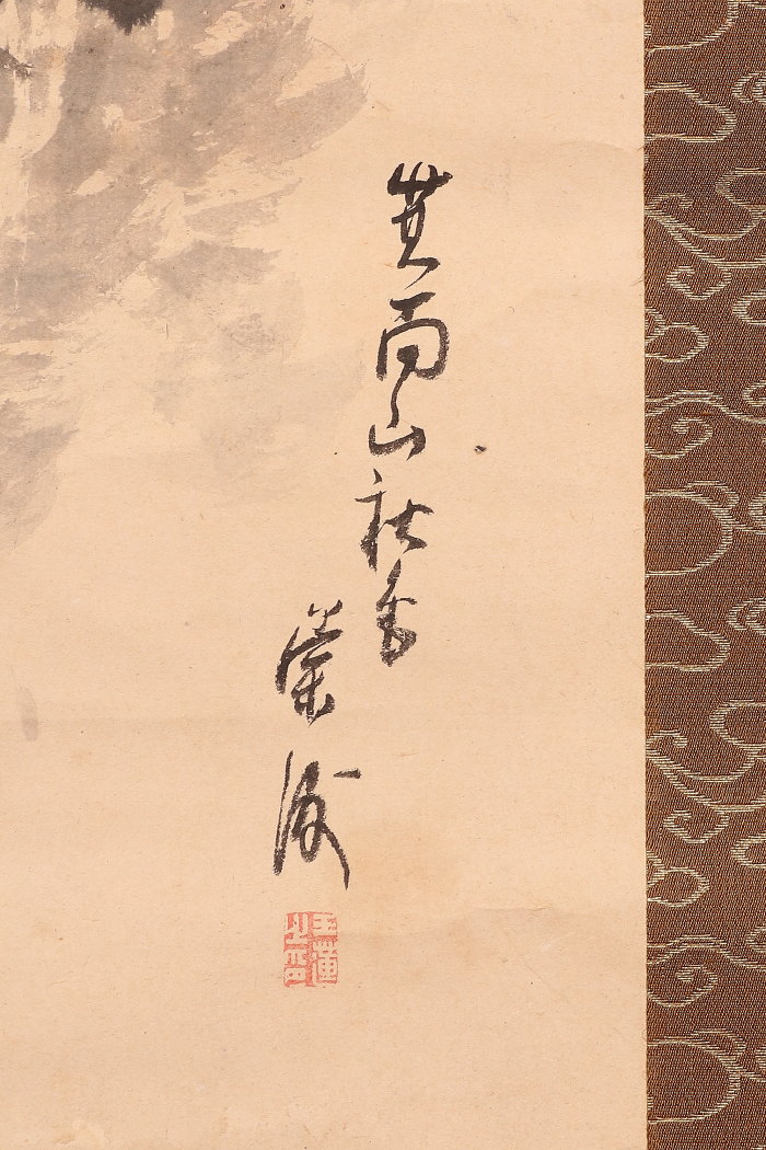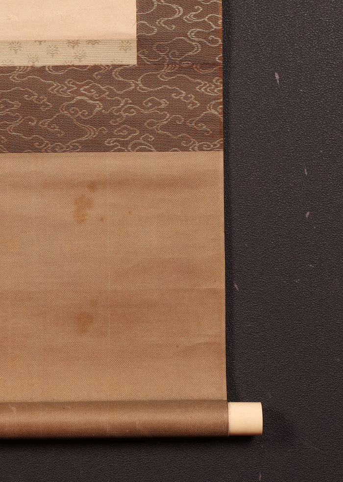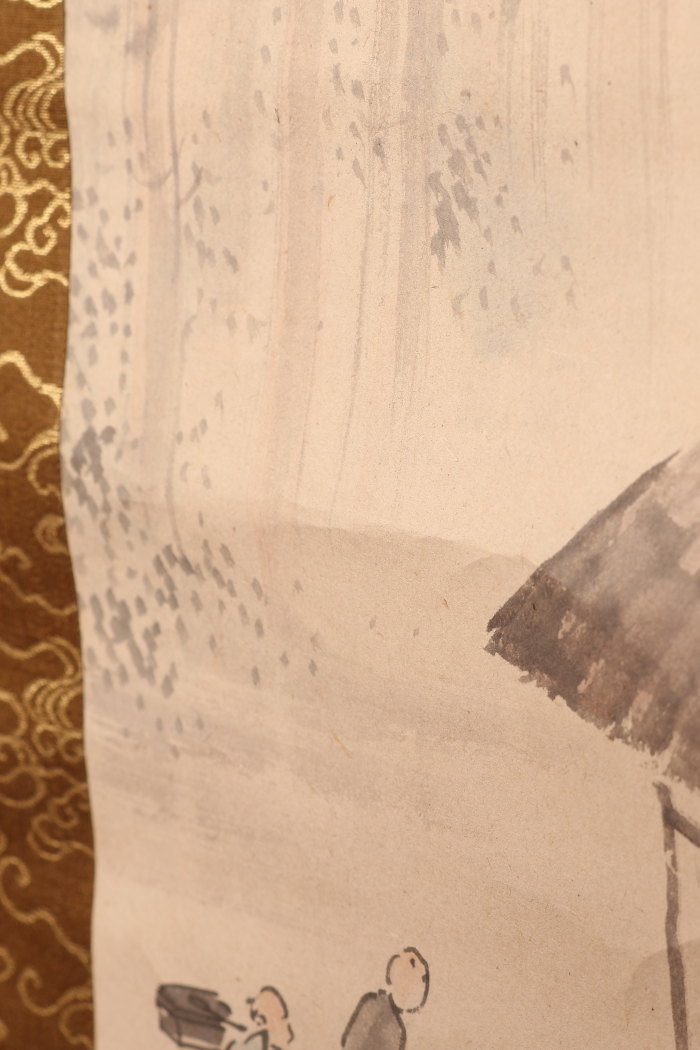 シミ(表具上部に大きなシミあり)、折れ、ヨレ、表具にイタミがあります。 - 付属品箱有り