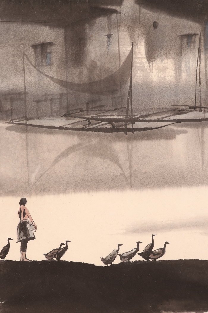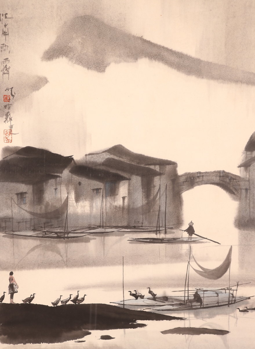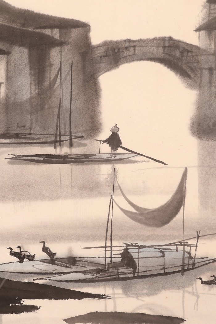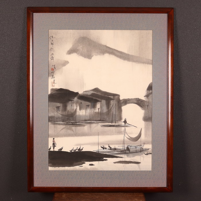 額装<楊明義>水郷図 「江南雨霽」(HP1393)