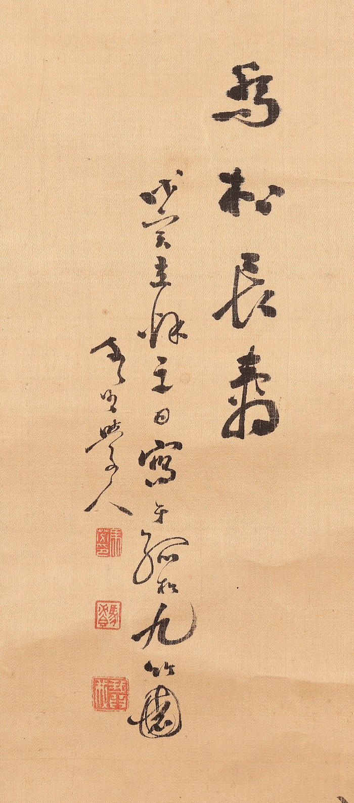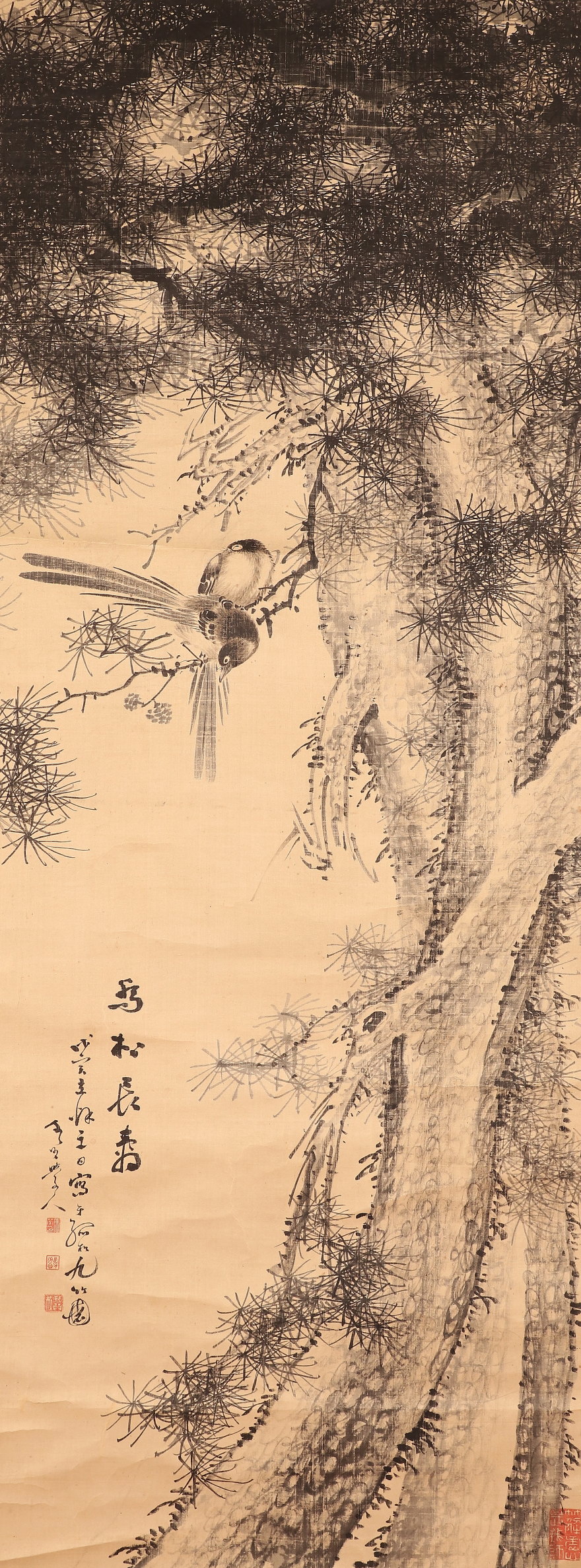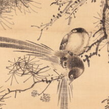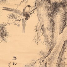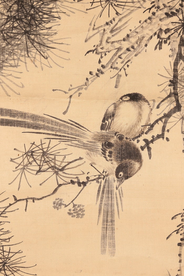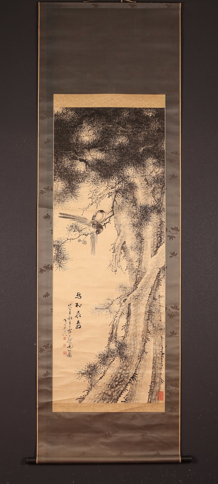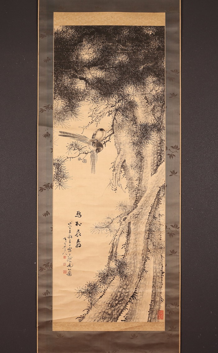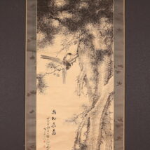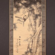 掛軸<田結荘千里>松小禽図 明治11年(HP1402)