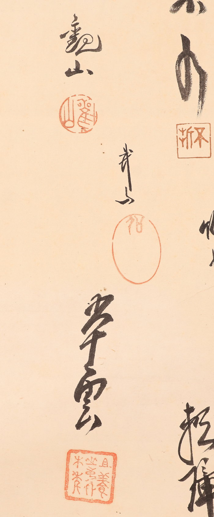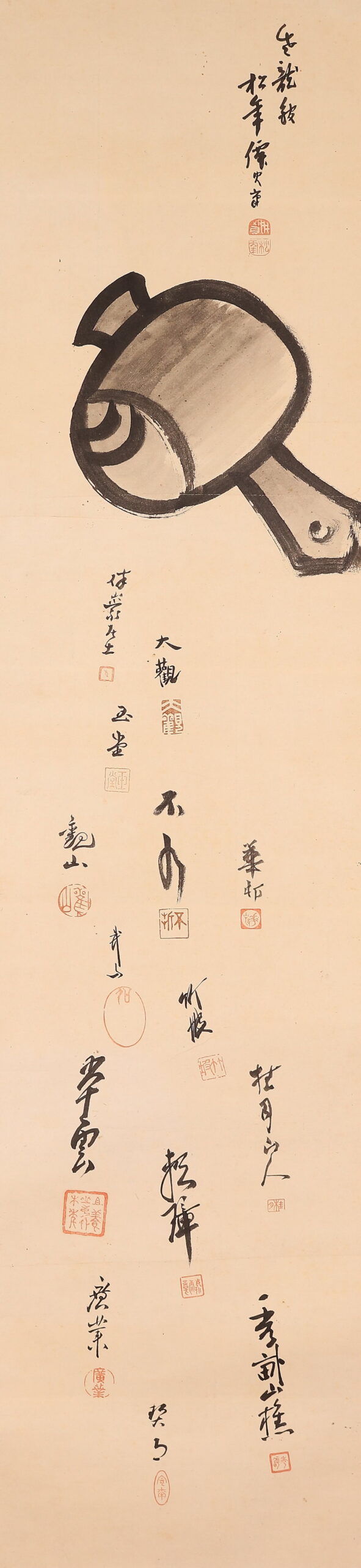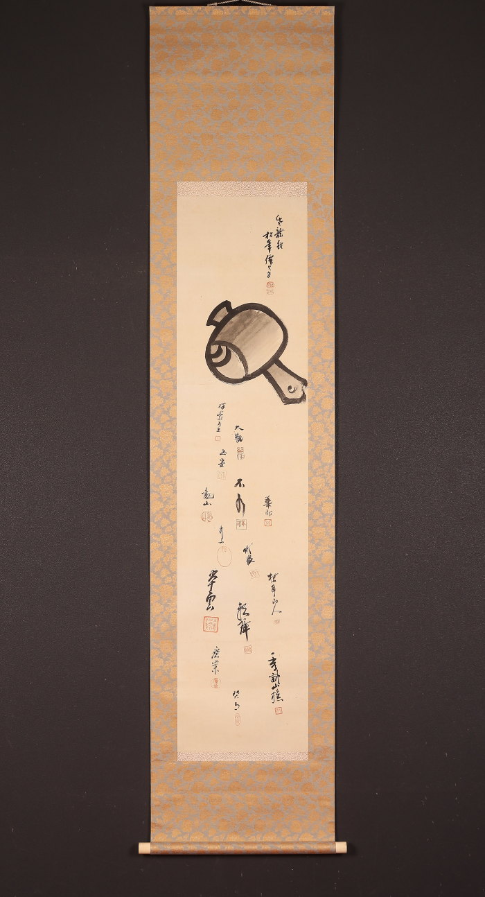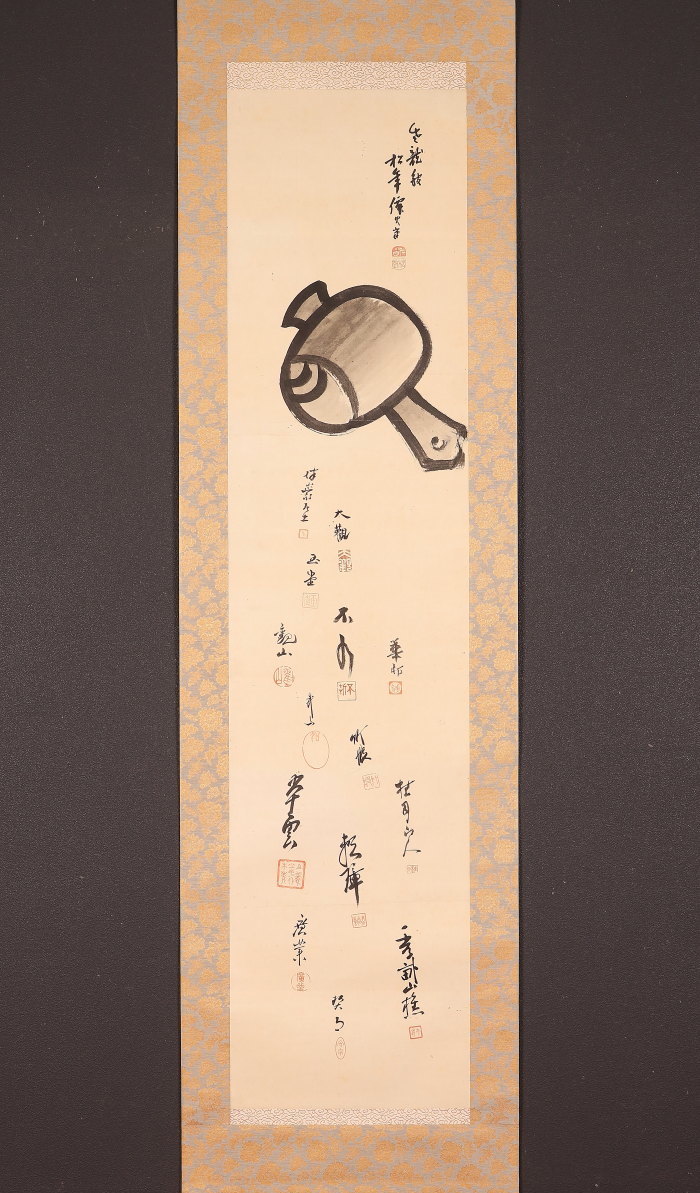 掛軸<鈴木松年 横山大観 川合玉堂 寺崎広業 下村観山 松林桂月 他>15名寄せ書き 小槌図(HP1405)