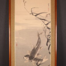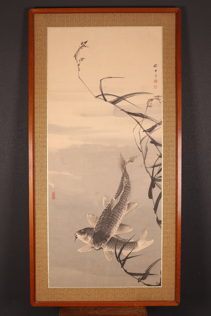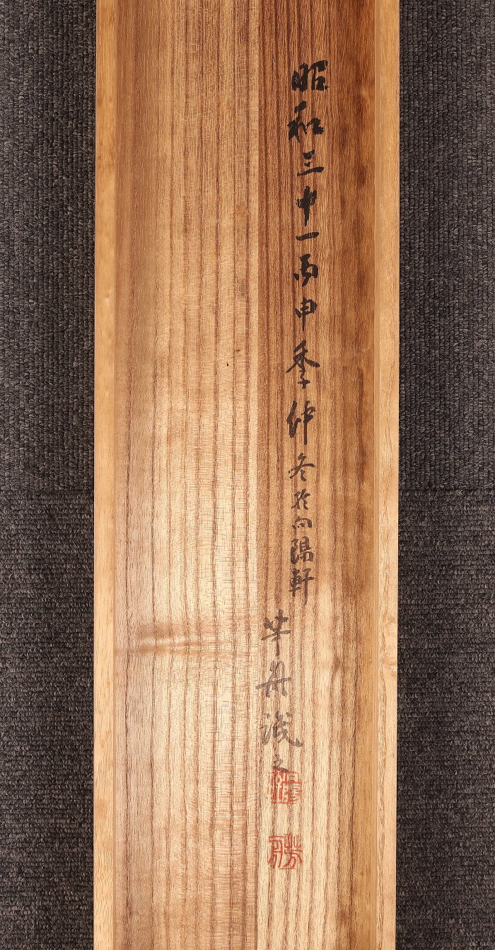 本紙にシミ、虫食い、額縁にイタミ、隙間、裏面にヤブレがあります - 付属品極箱(河村芳舟)・付属紙3枚付属
