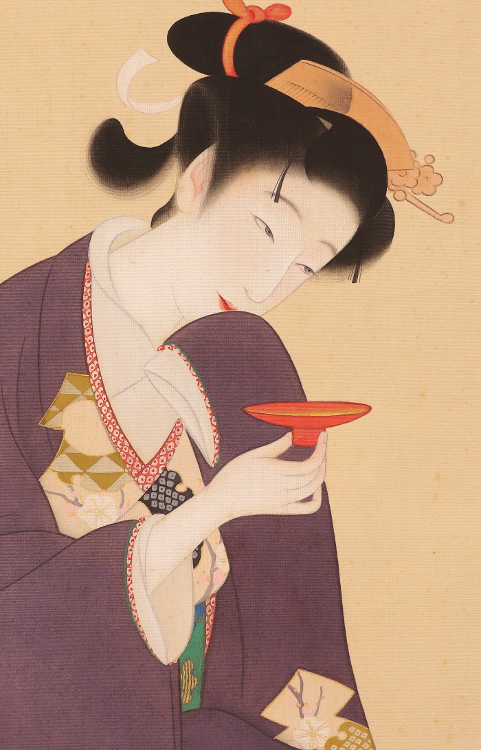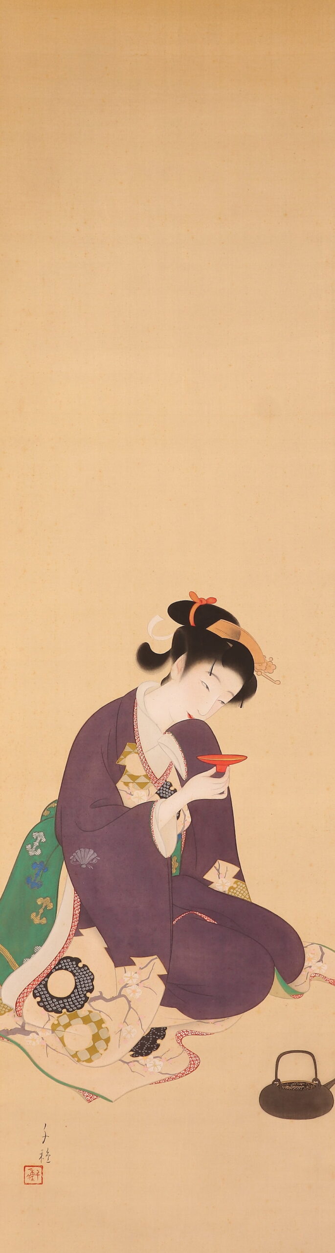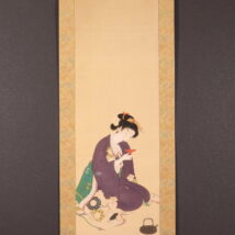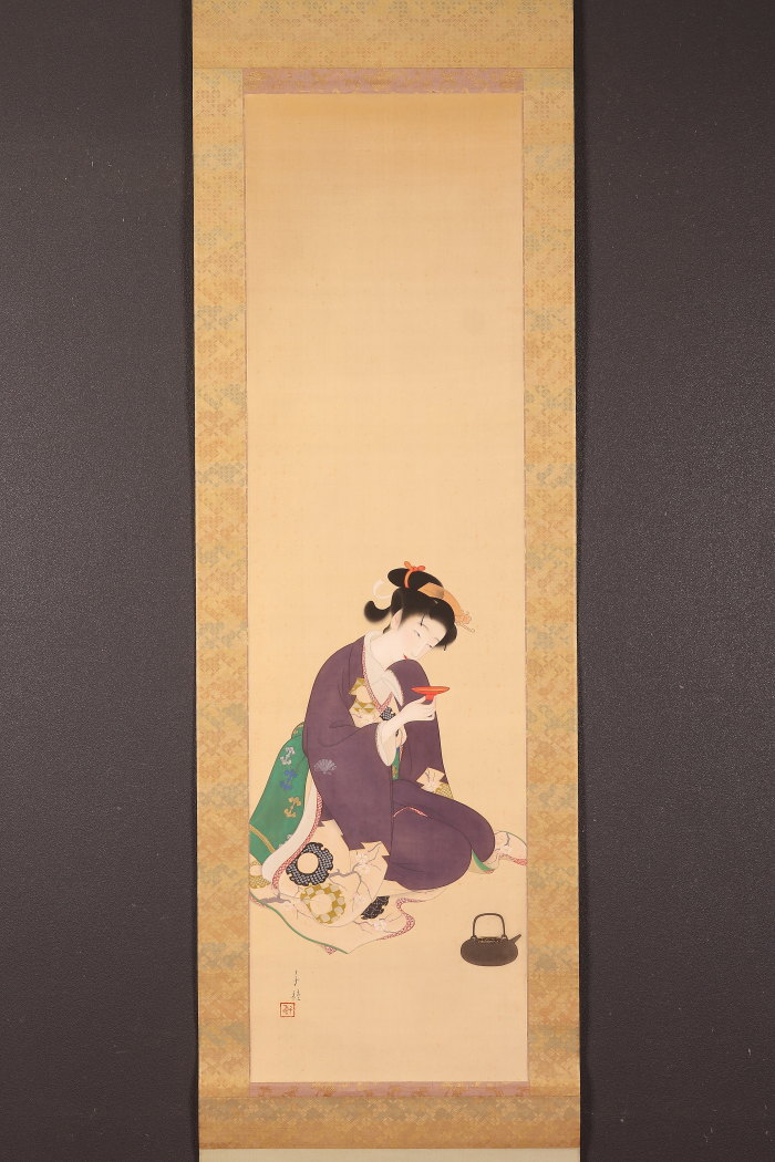 掛軸<木谷千種>酒美人図「賀盞」(HP1412)