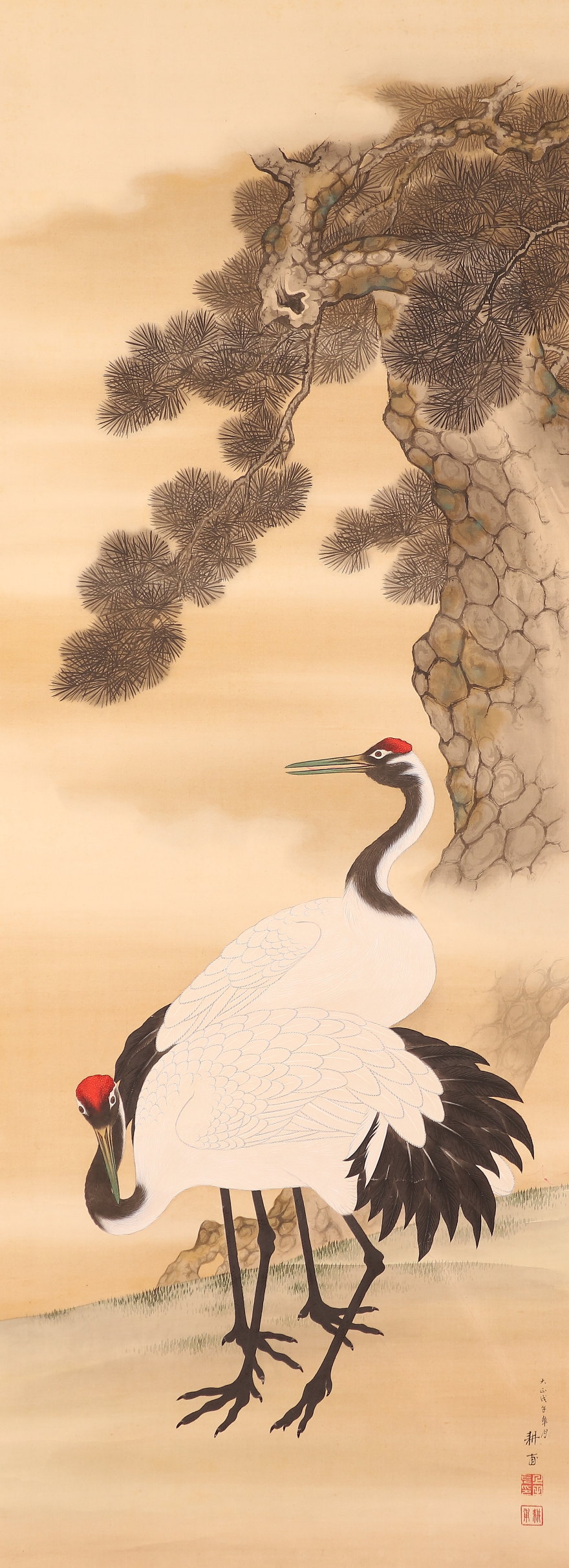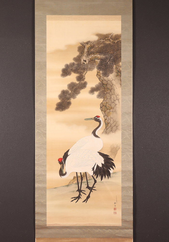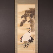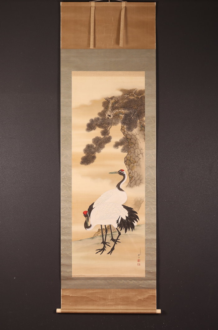 掛軸<上田耕甫>老松双鶴図(HP1414)