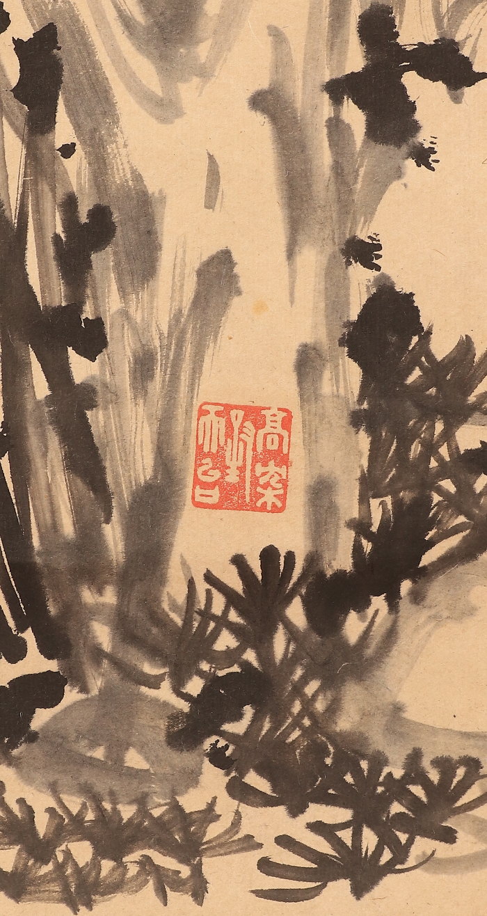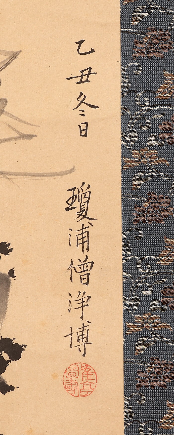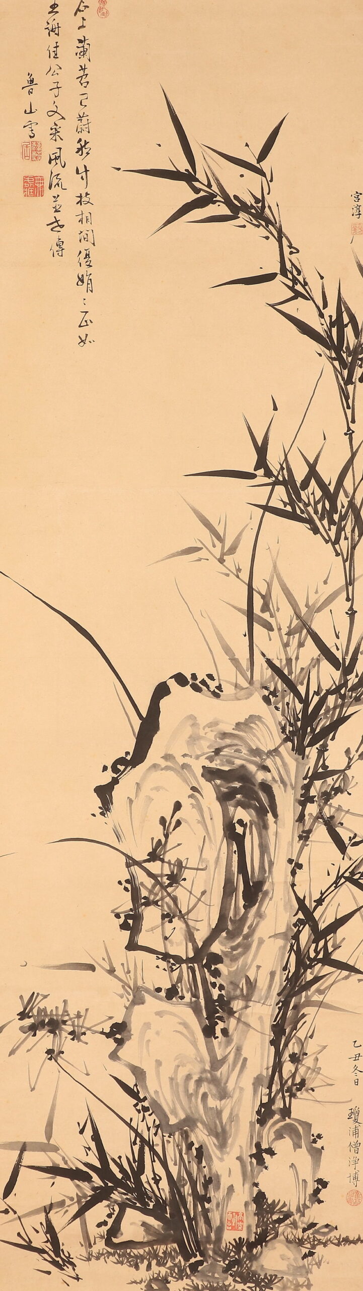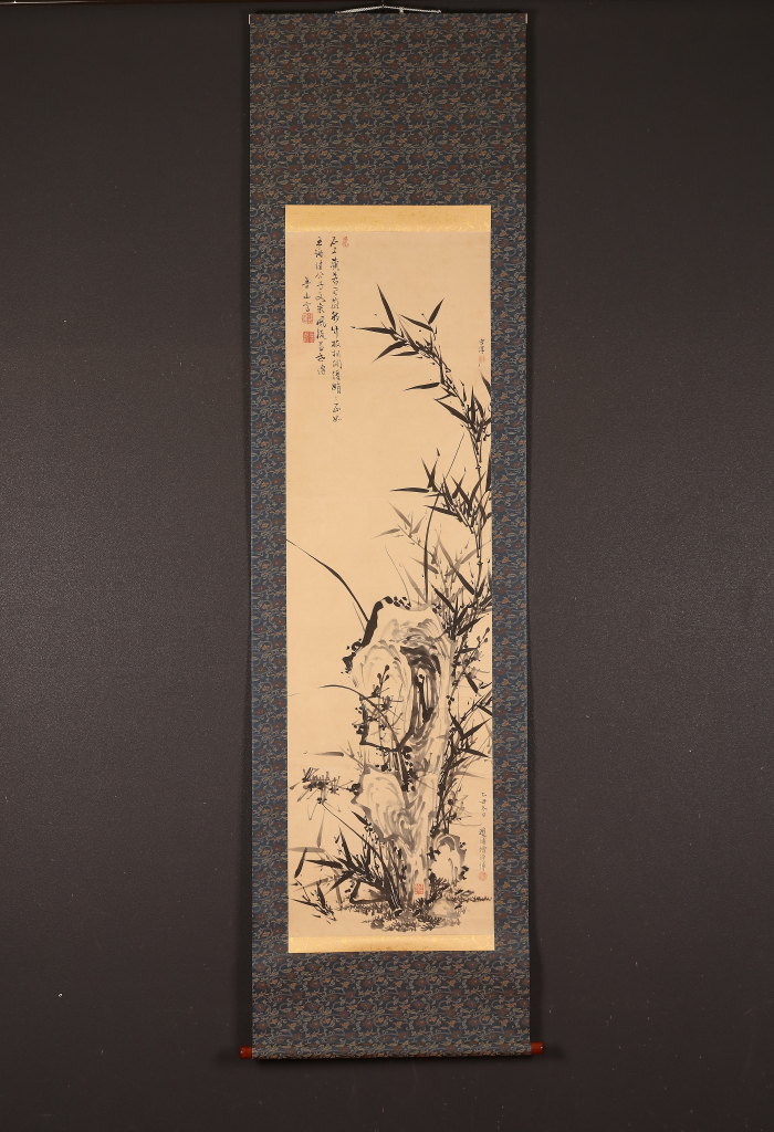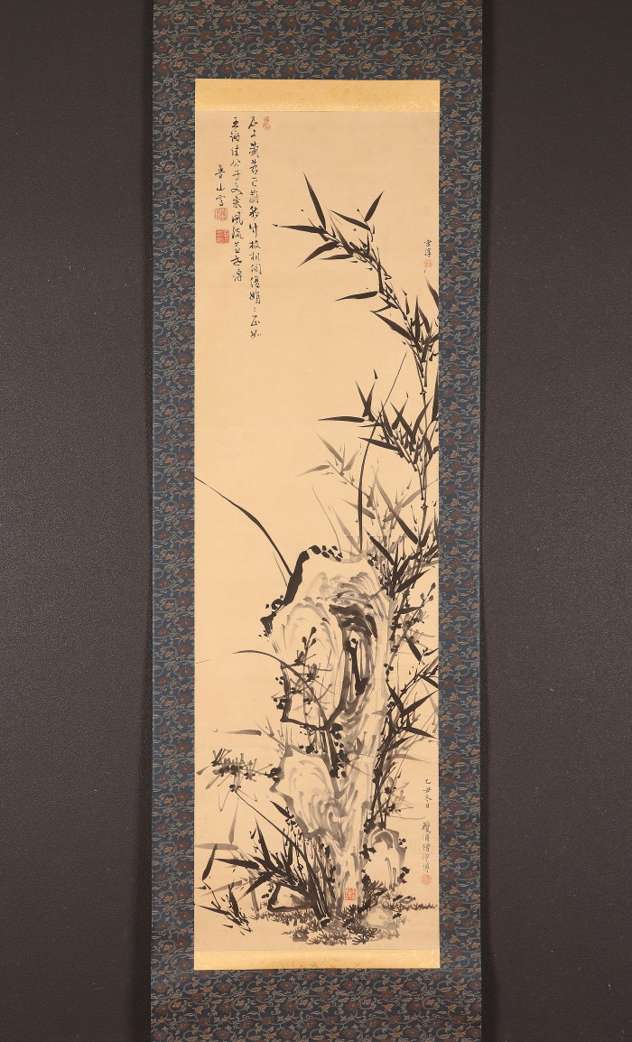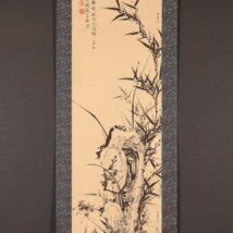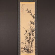 掛軸<浄光鶴亭 魯山 宮淳>竹石画賛(HP1420)