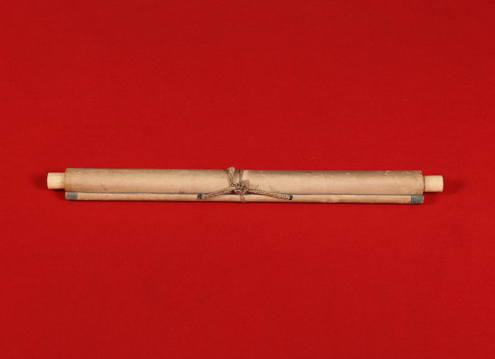 シミ、折れ、表具にイタミ、虫食い穴、裏面修理があります。 - 付属品-