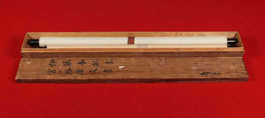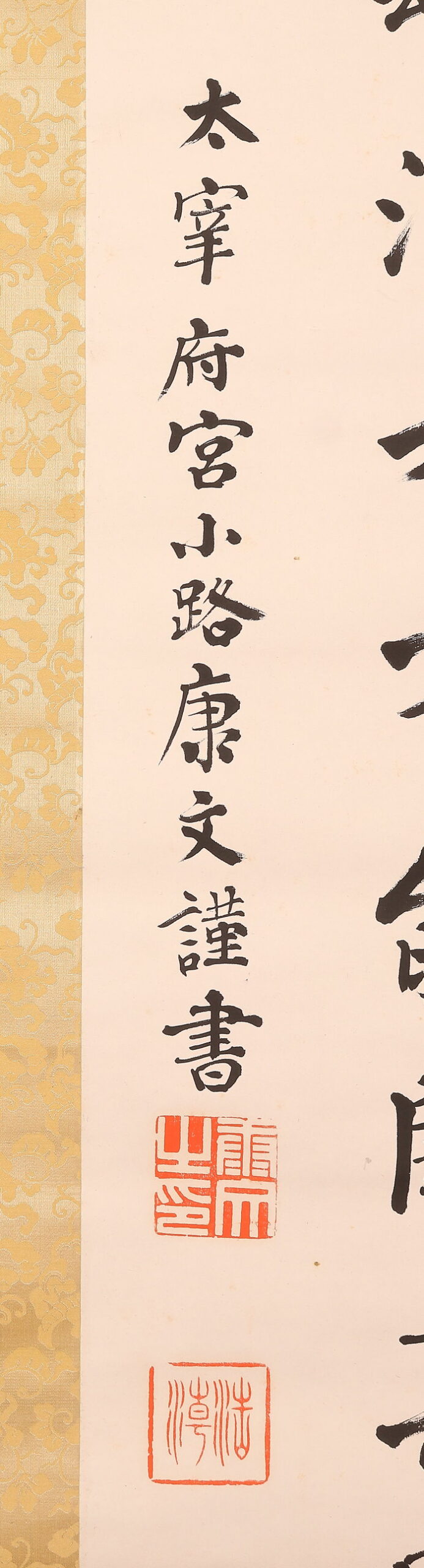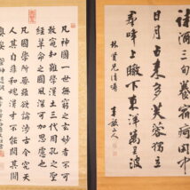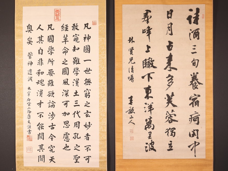 掛軸<伊藤博文 宮小路康文>大幅 書 2本組 天覧印(HP1424)