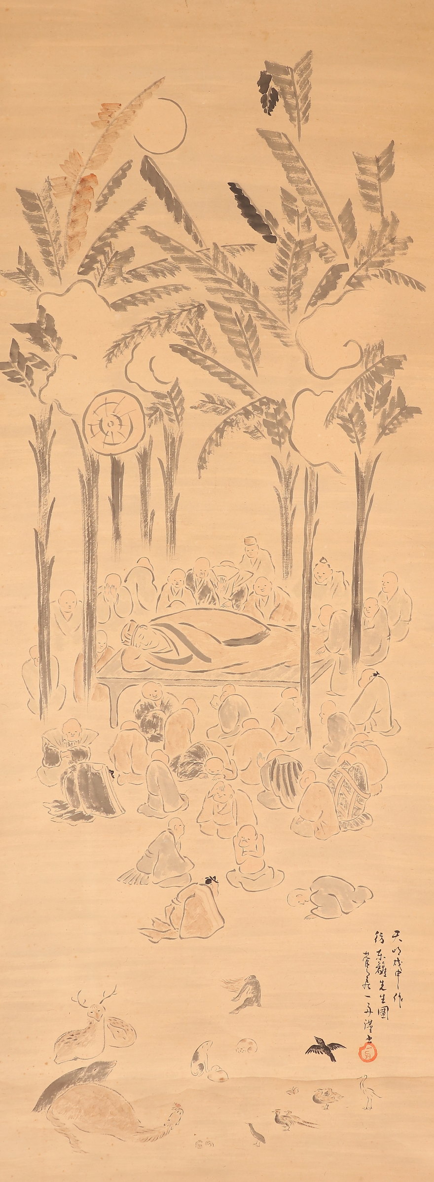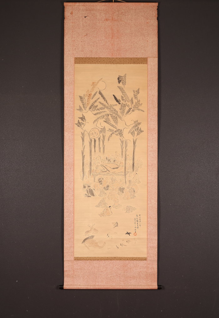 掛軸<藤村一舟>芭蕉涅槃図 参考資料有り(HP1433)