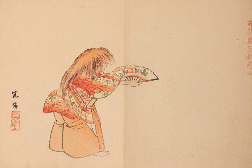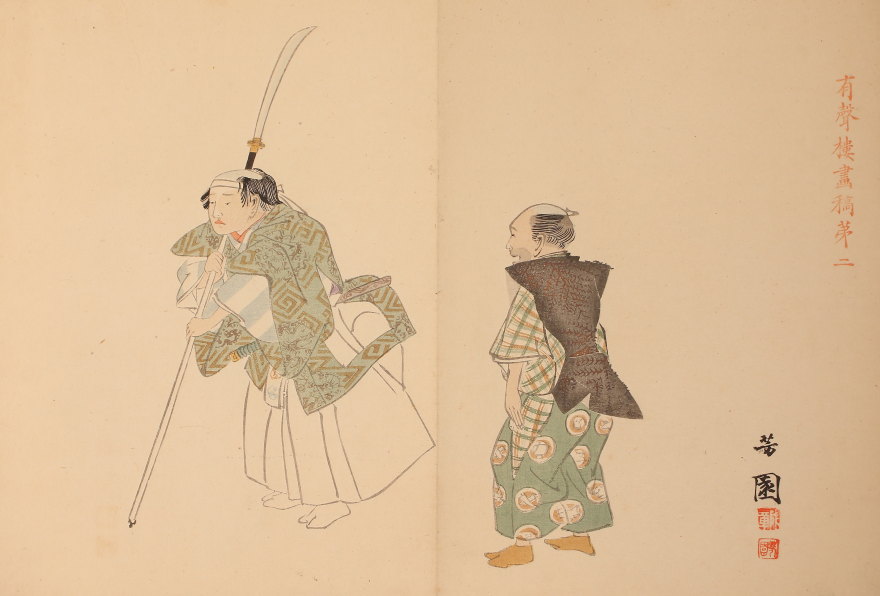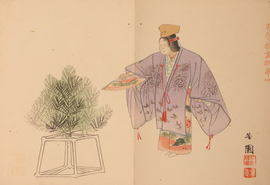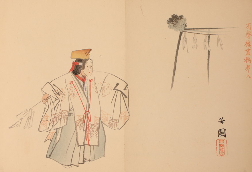 <西山完瑛 西山芳園>有聲楼画稿 能狂言人物画譜 西山完瑛遺編 全12図 木版(HP1438)