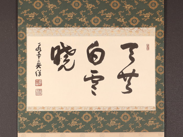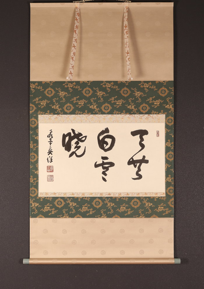 掛軸<宮崎奕保>書「天無白雲暁」(HP1446)