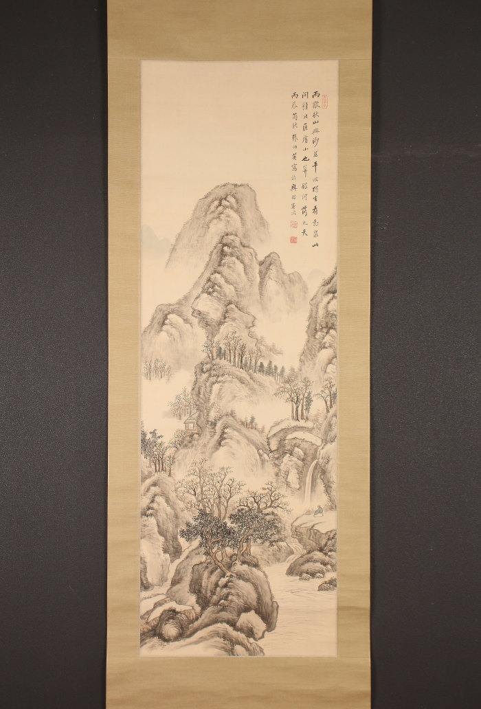 掛軸<張俊>山水図(HP1461)