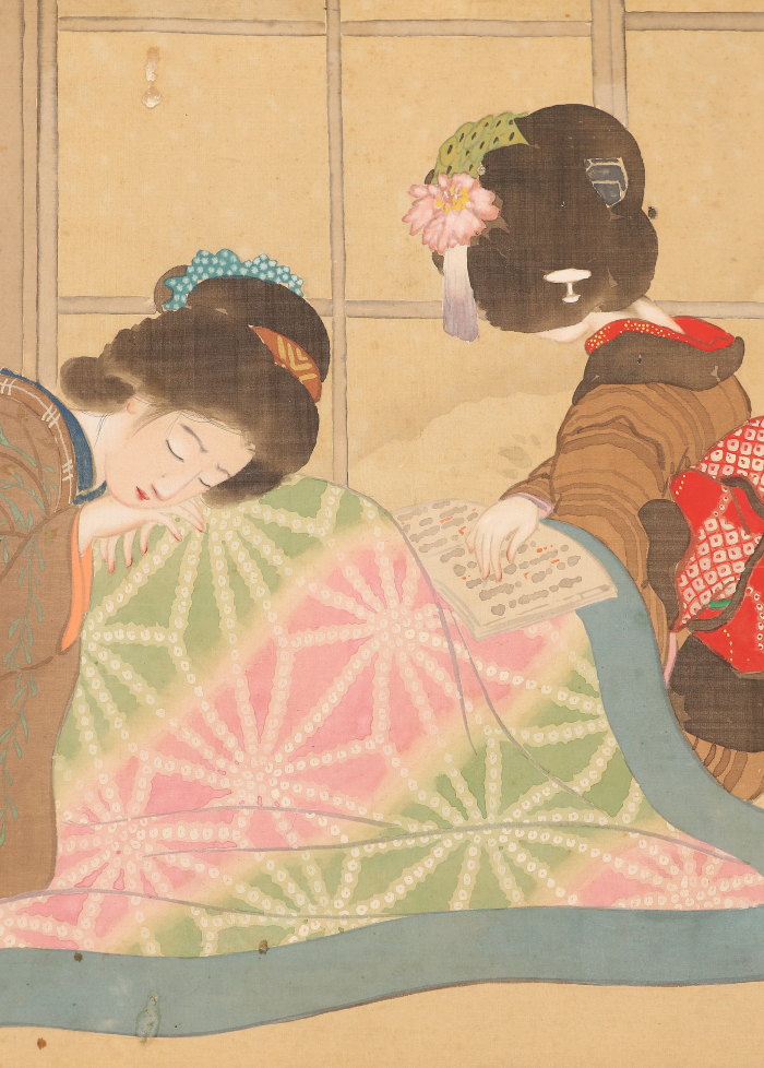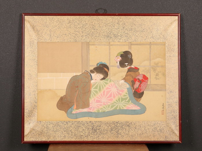 額装<岡本更園>布団午睡美人図 冬掛(HP1466)