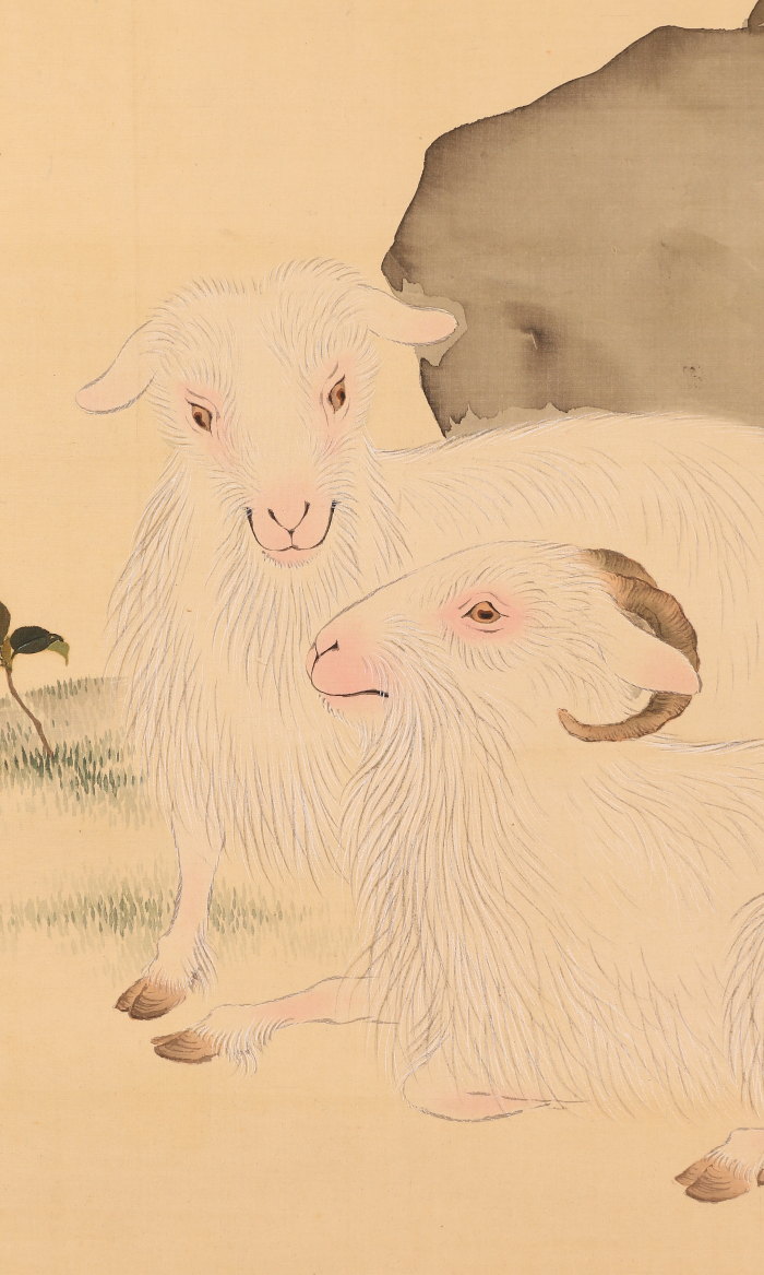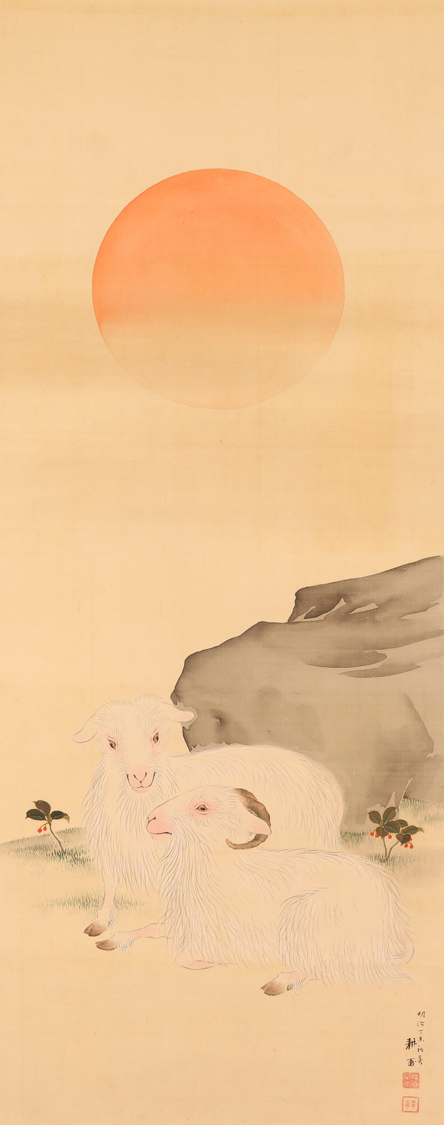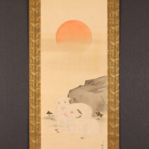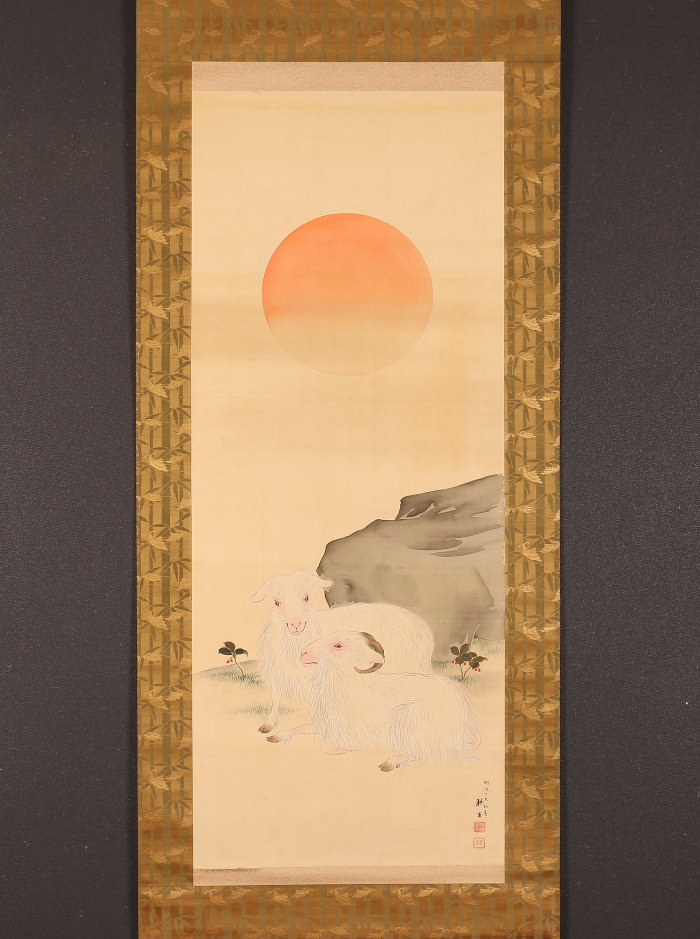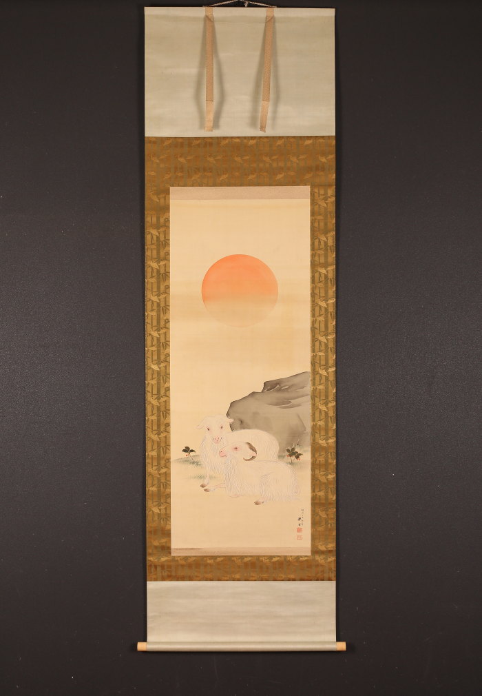 掛軸<上田耕甫>旭日双羊図(HP1491)