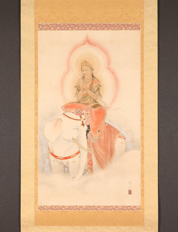掛軸<石川晴彦>仏画 普賢菩薩図 中国(HP1493)