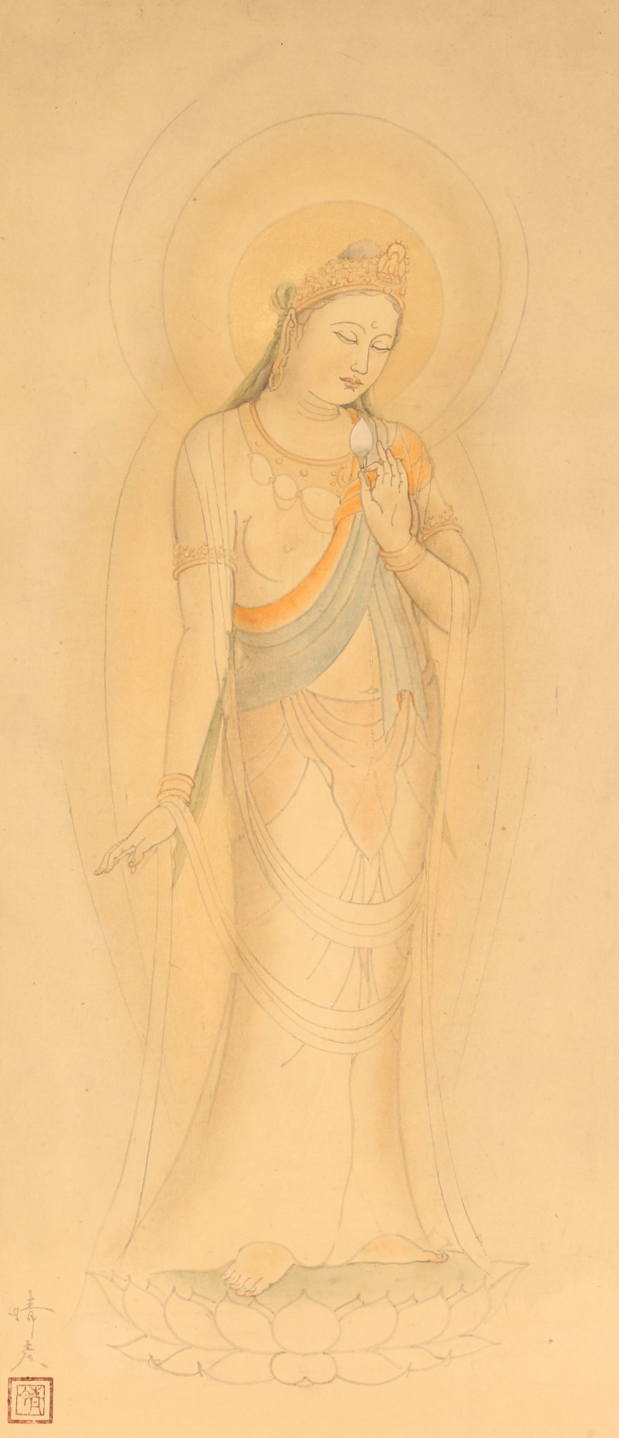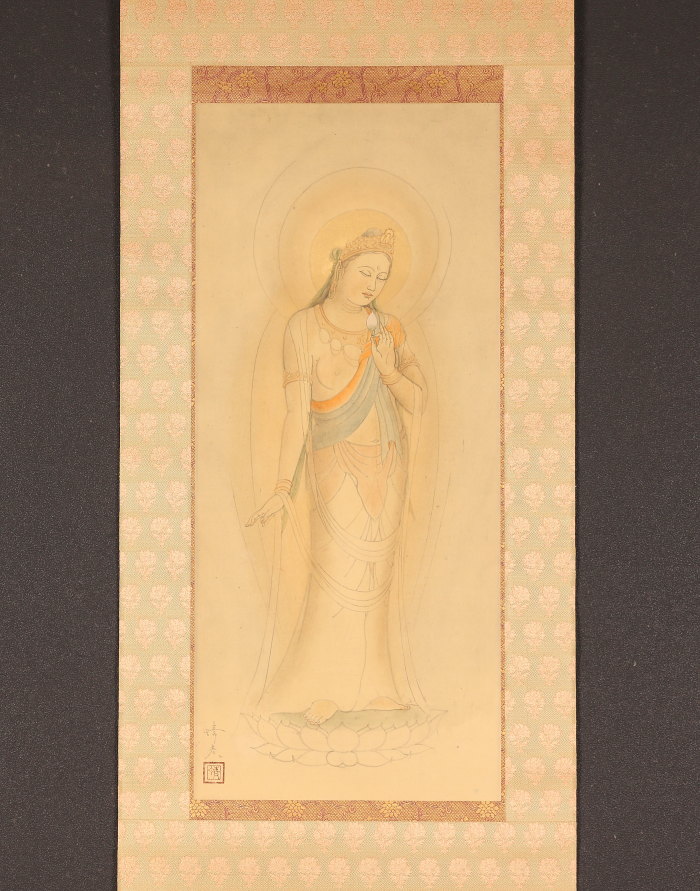 掛軸<石川晴彦>仏画 観世音菩薩図 中国(HP1494)