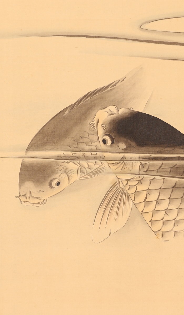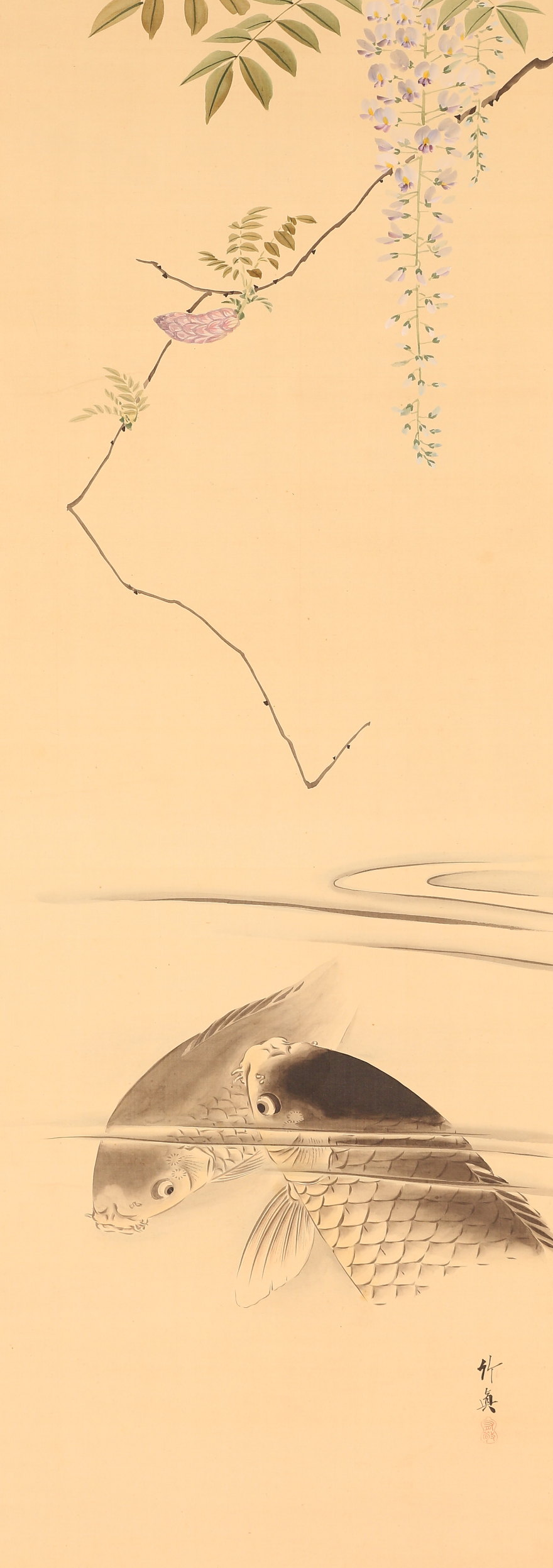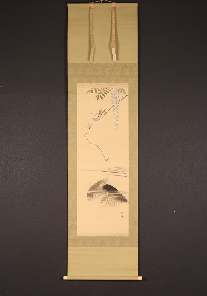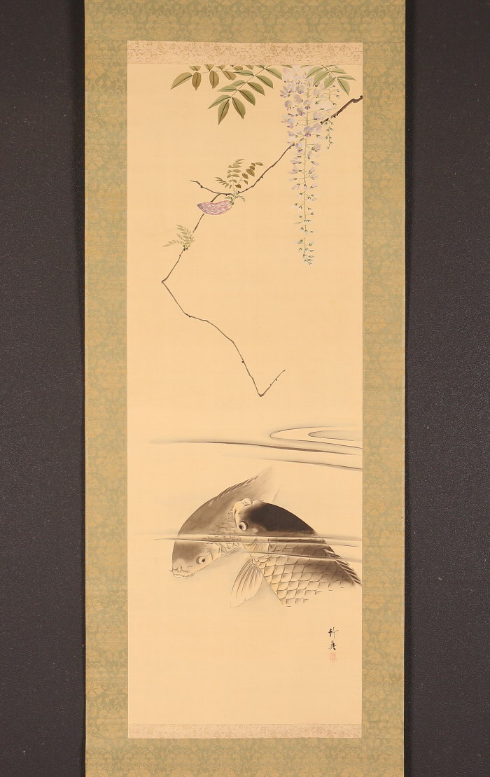 掛軸<庄司竹真>藤花鯉図(HP1499)