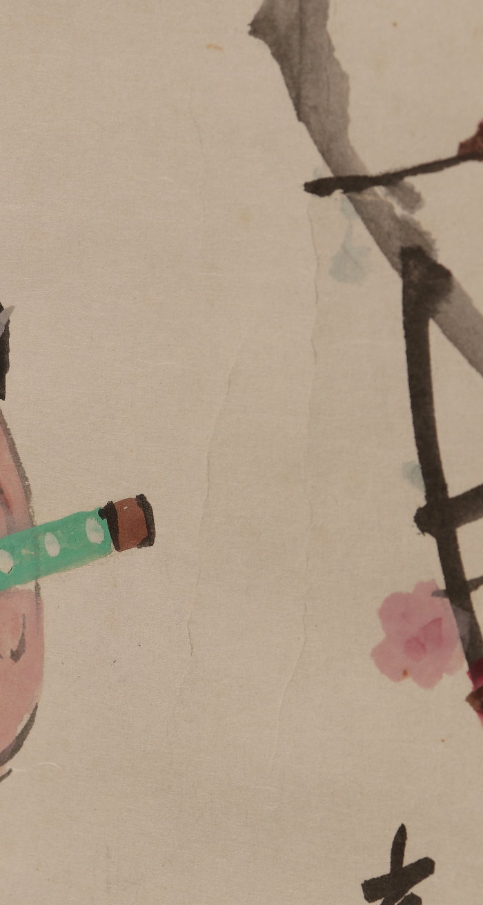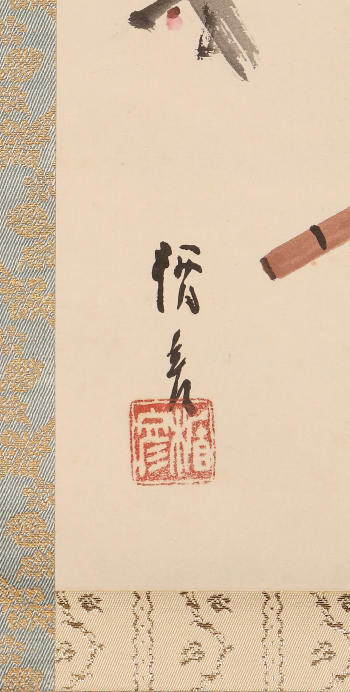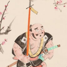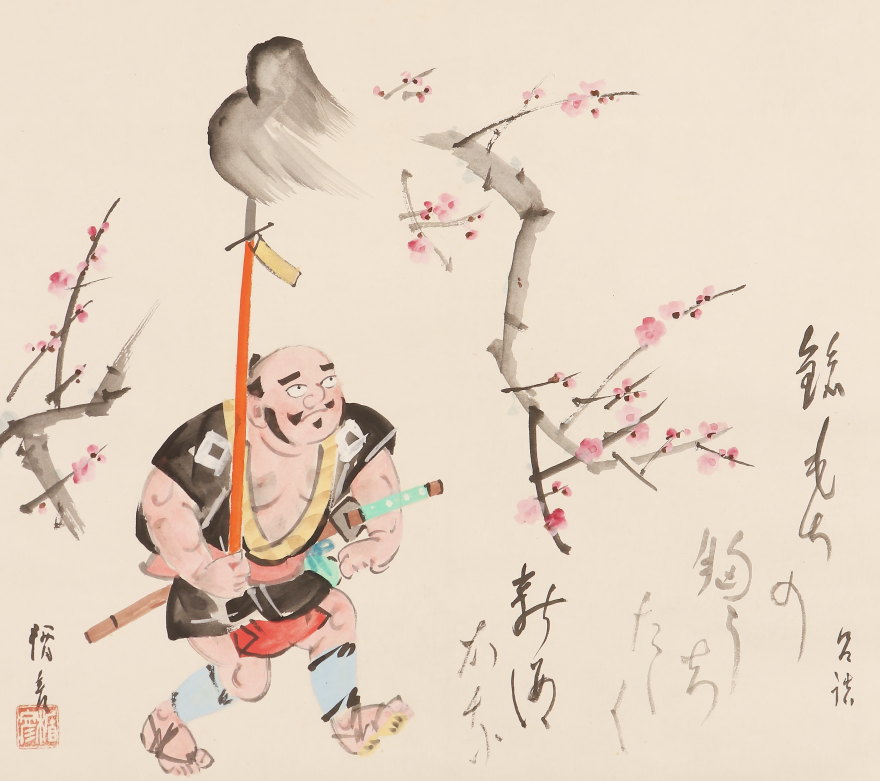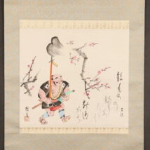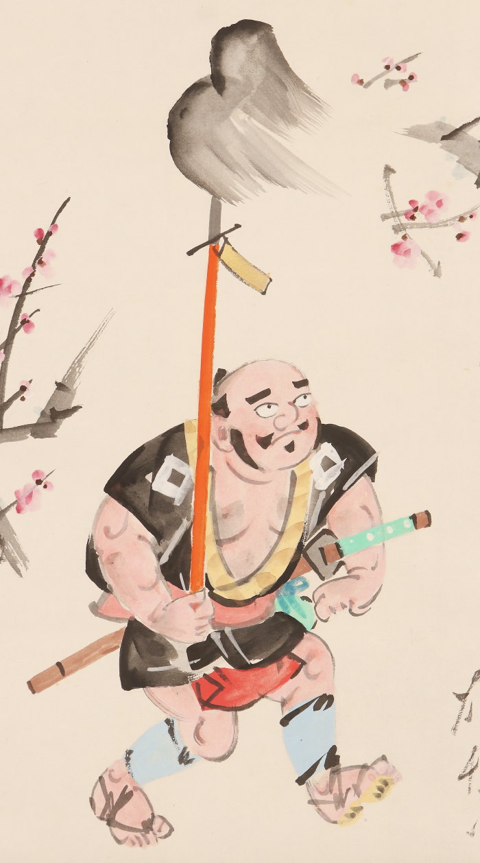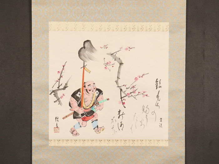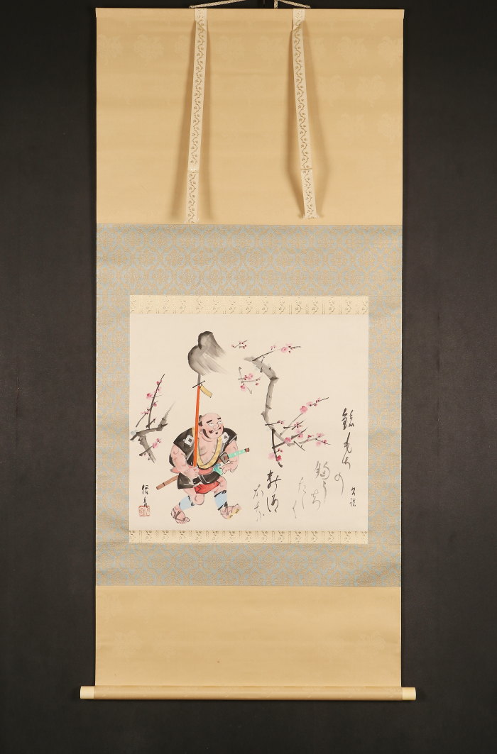 掛軸<菅楯彦>槍持奴画賛「梅花一鎗」(HP1501)