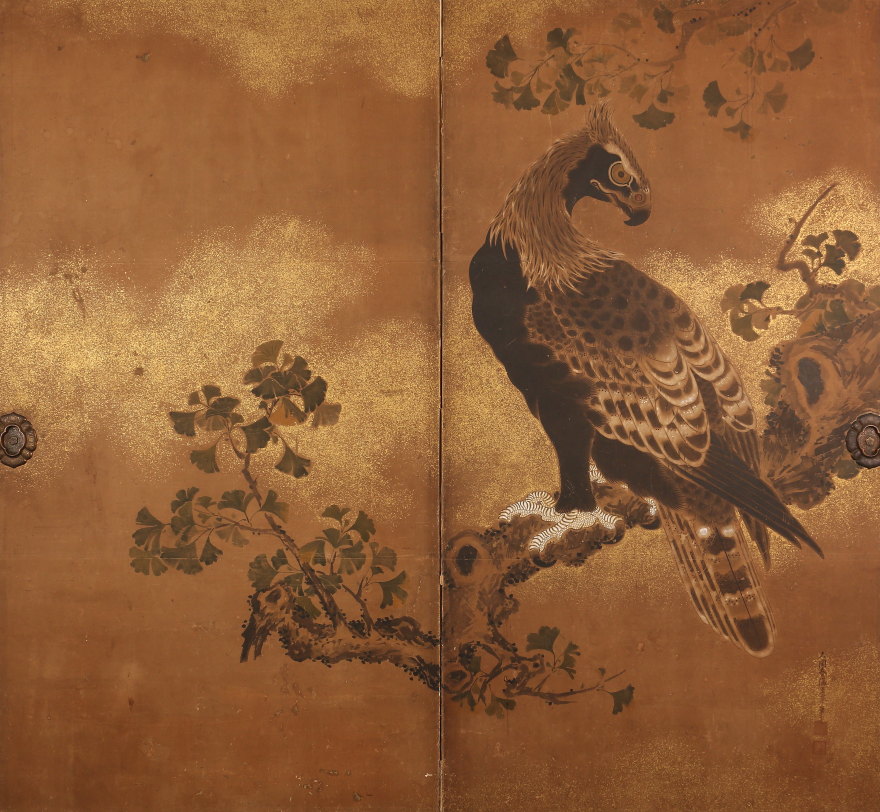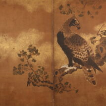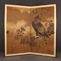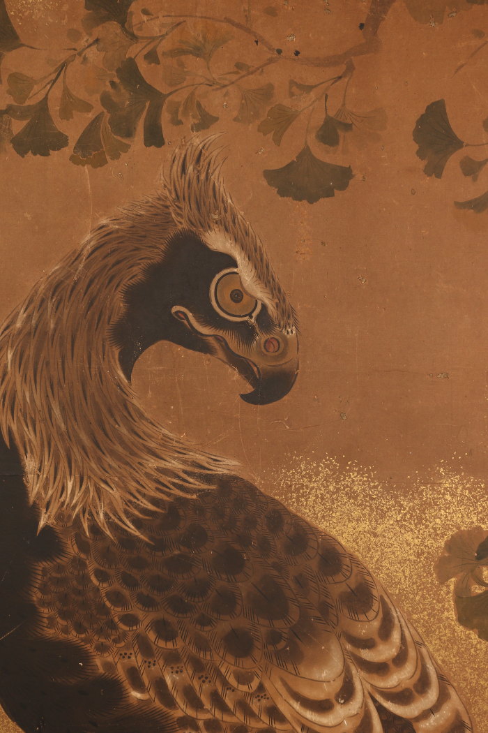 屏風<大岡春隣>希品! 鷹図屏風 二枚折 大岡春卜門下か(HP1504)