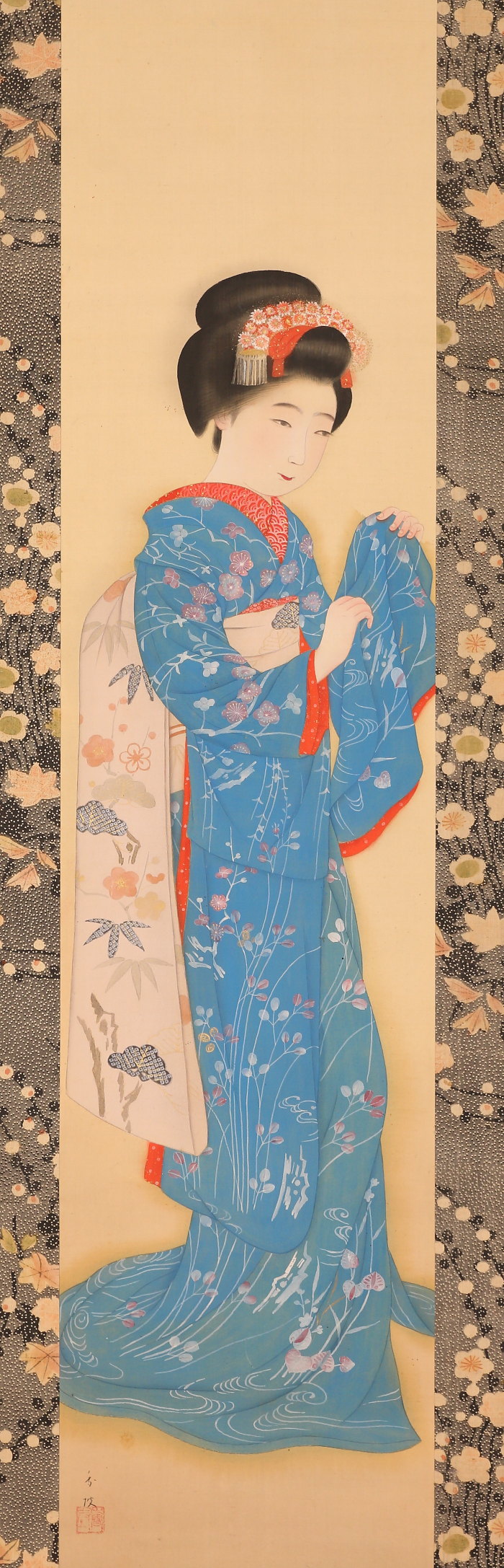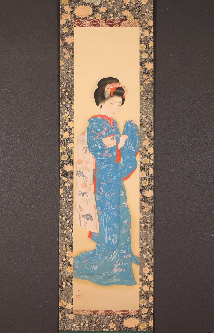 掛軸<堀井香坡>美人画 舞妓図(HP1505)