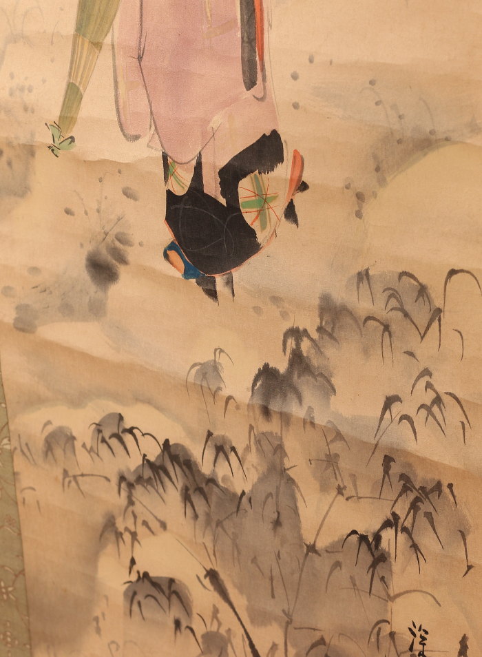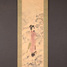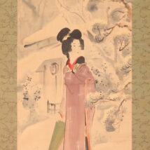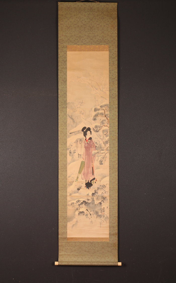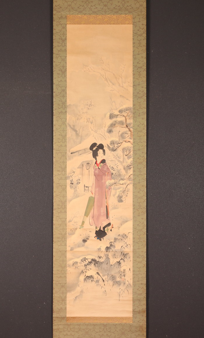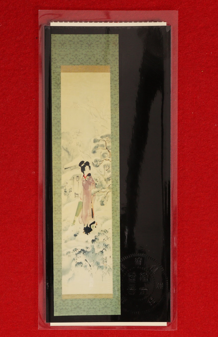 掛軸<伊東深水>雪中美人図 共箱 東京美術倶楽部鑑定証書付属(HP1508)