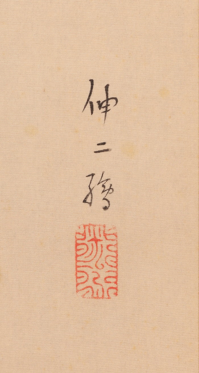 本紙に折れ、少しシミ、絵具剥脱、表具に少し折れがあります。 - 付属品箱有り