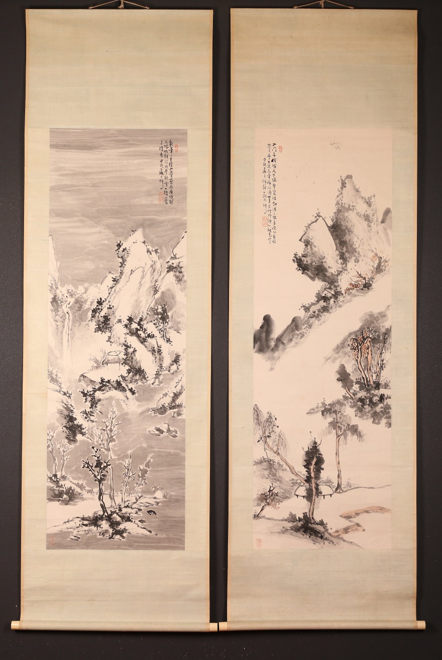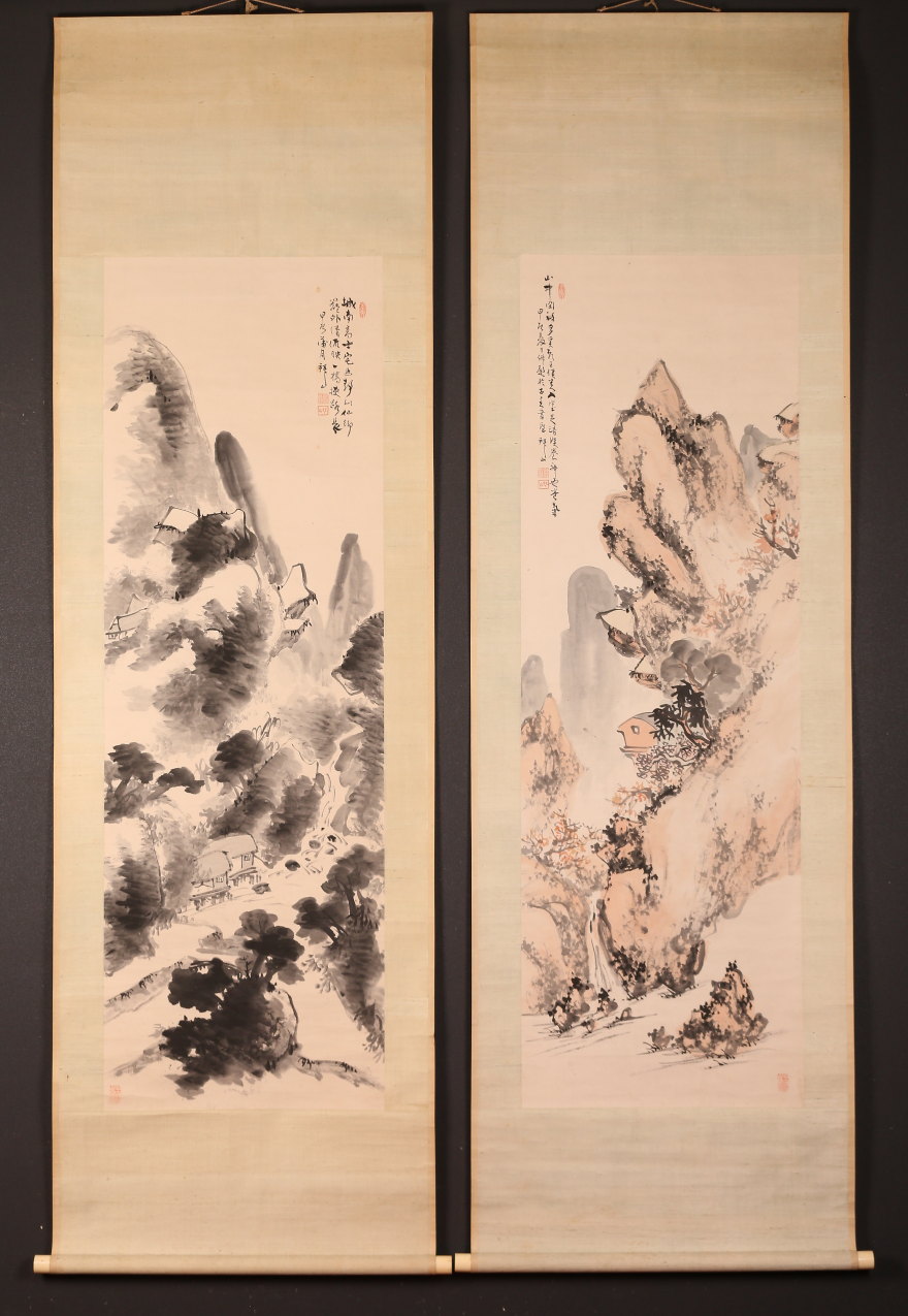 掛軸<吉嗣拝山>四幅対 四季山水画賛(HP1521)