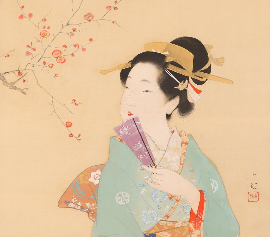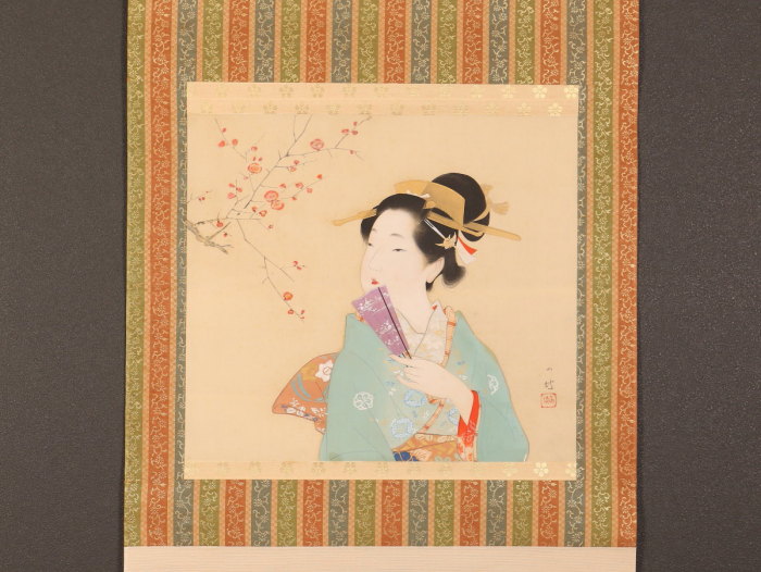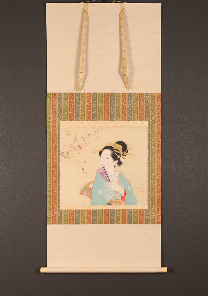 掛軸<伊藤小坡>梅美人図(HP1524)
