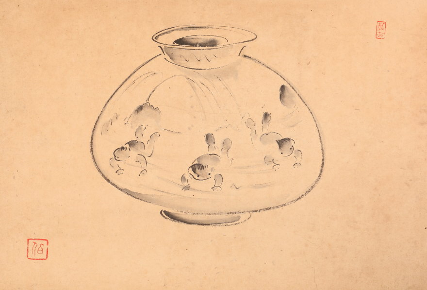 額装<浅川伯教>李朝壷図(HP1526)