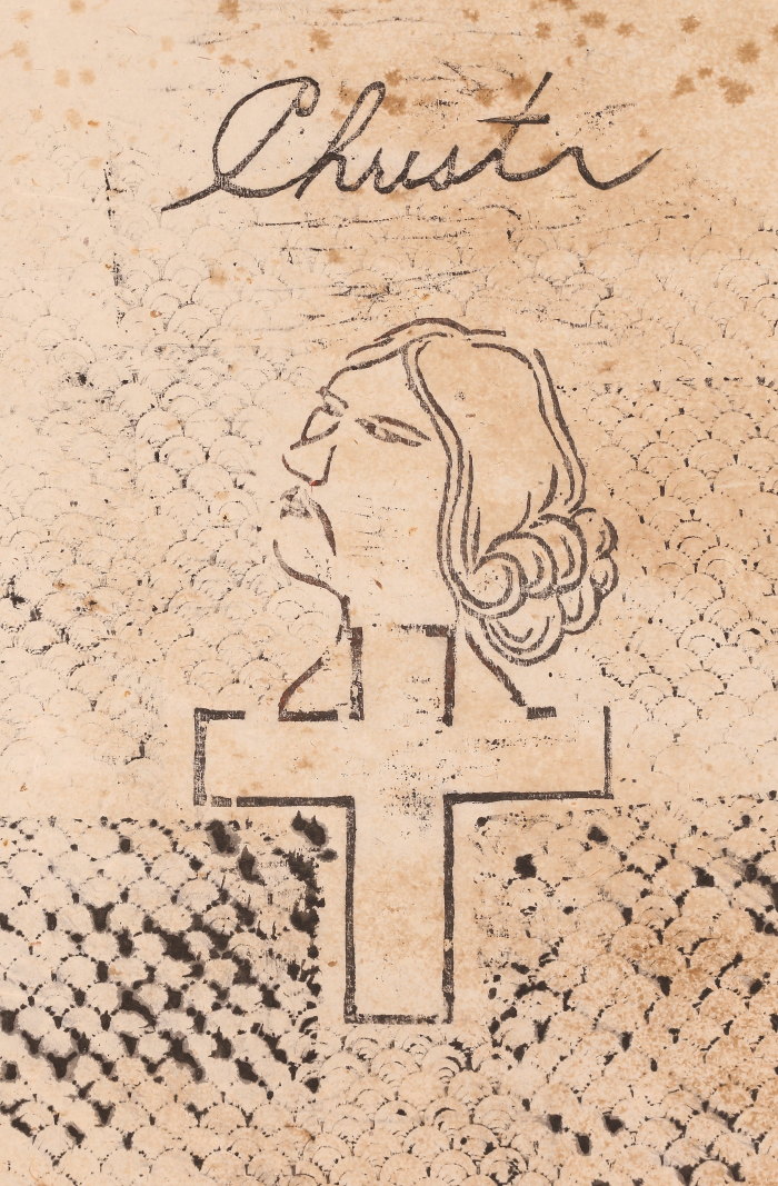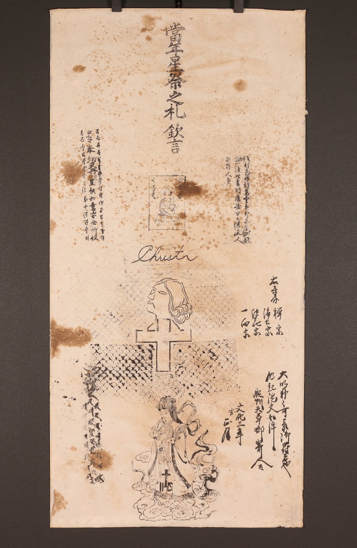 キリシタン紙踏絵「當年星祭之礼欽言」「Christr」切支丹 イエズス会紋章入り吉祥天像 木版 マクリ(HP1529)