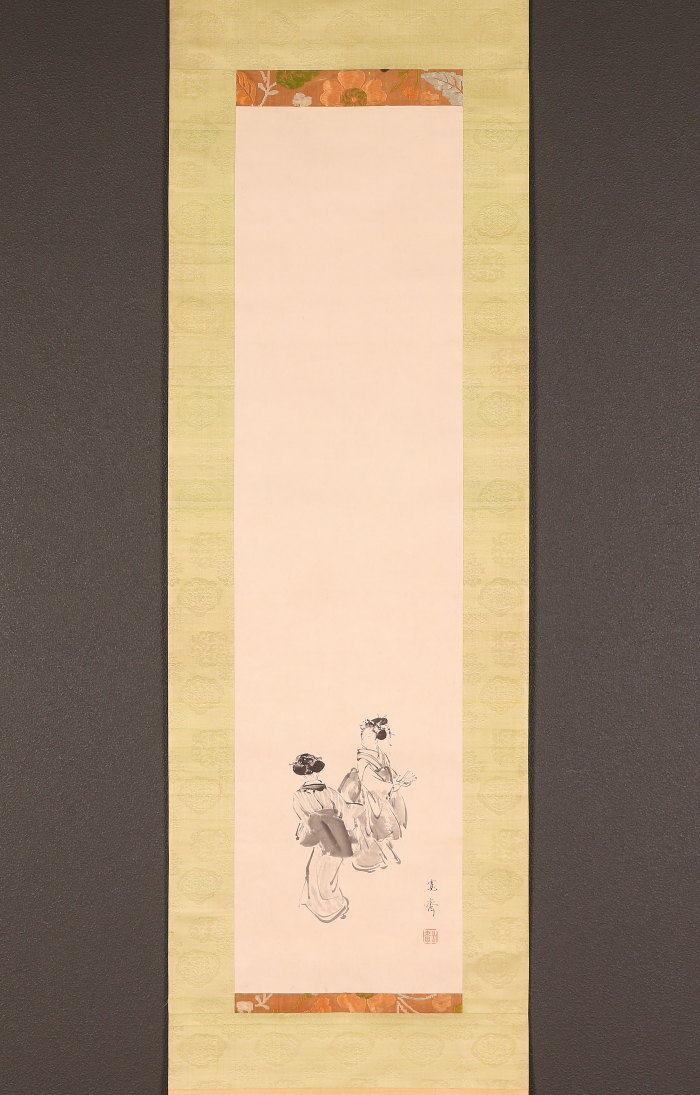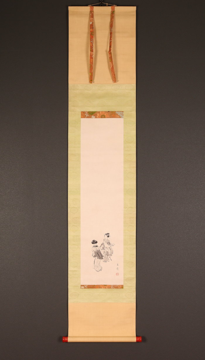 掛軸<森寛斎>都美人図 時代裂 刺繍表具(HP1531)