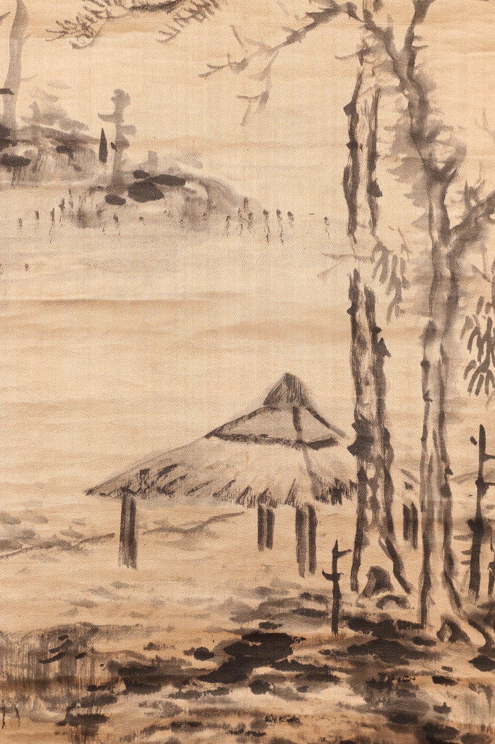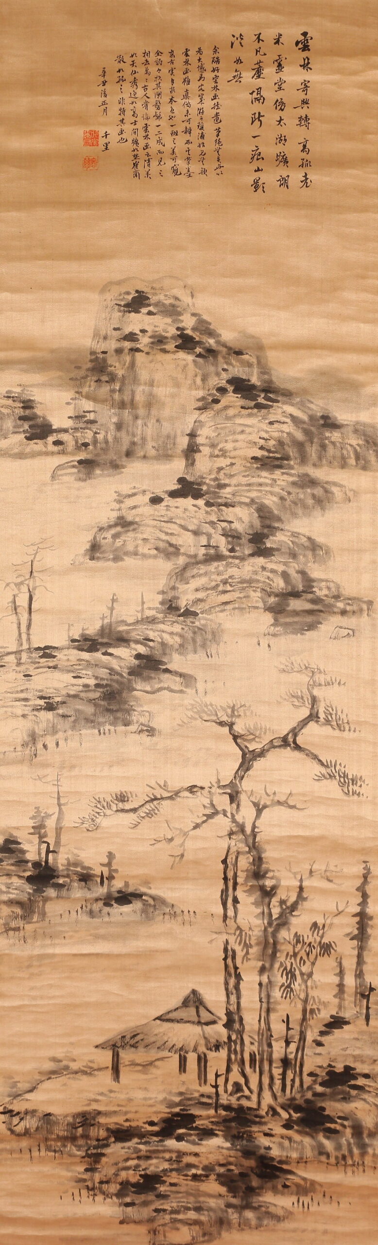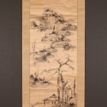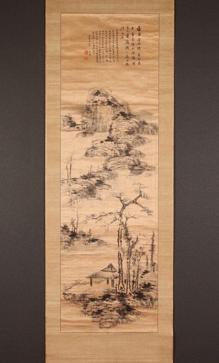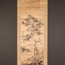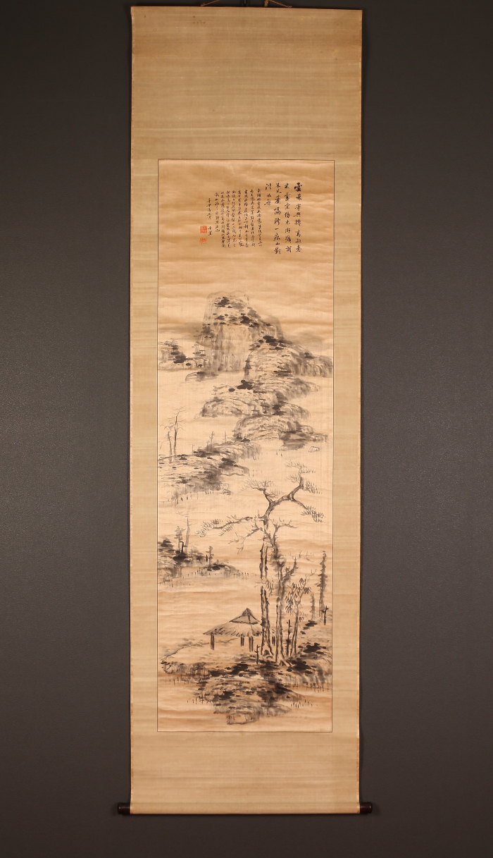 掛軸<田結荘千里>山水画賛 倣:倪瓚 竹園極箱(HP1532)